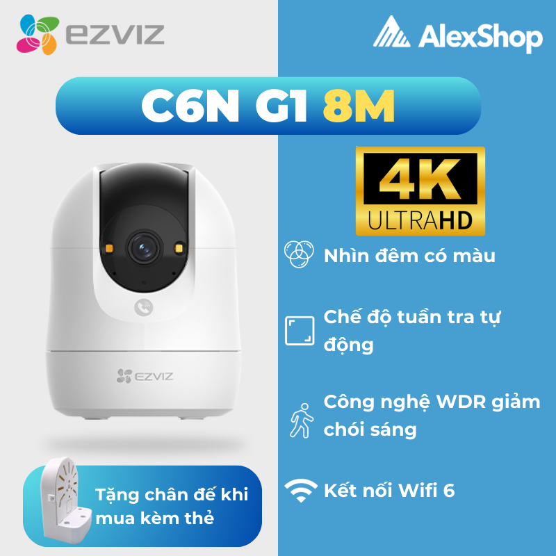 🔥🔥🔥[COMBO-4K] Camera Wifi Ezviz C6N 4K G1 + Thẻ 64Gb + Chân Đế L🔥🔥🔥