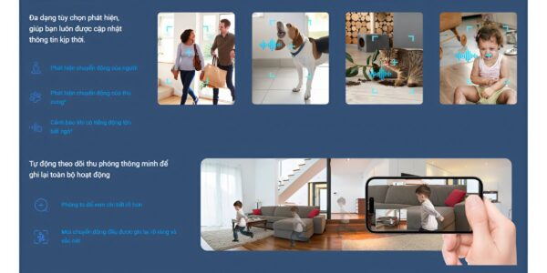Tính năng theo dõi chuyển động, gửi cảnh báo tức thì qua app.