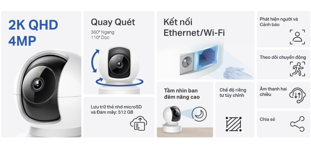 - 🎥 Ghi hình video chất lượng cao – 2K QHD (4MP):