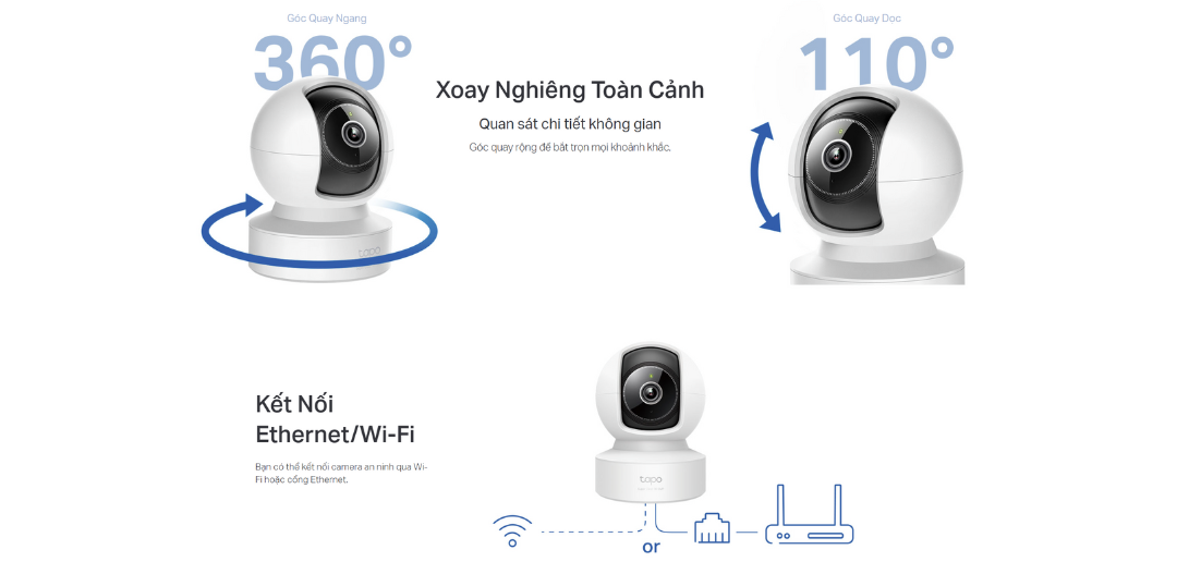 - 🔄 Phạm vi chuyển động rộng – Xoay 360° ngang và 110° dọc: