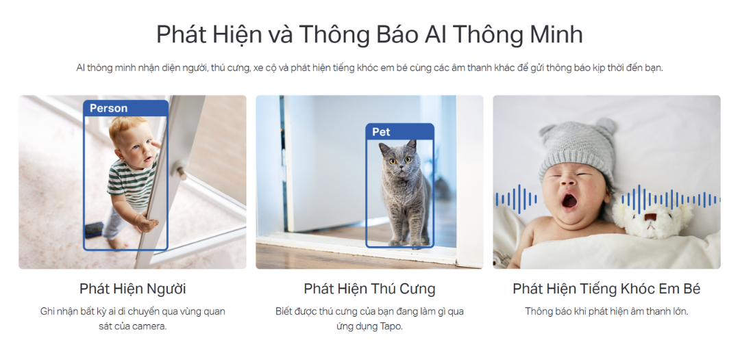 Công nghệ AI giúp nhận diện chính xác người và sự kiện bất thường, gửi thông báo tức thời đến điện thoại.