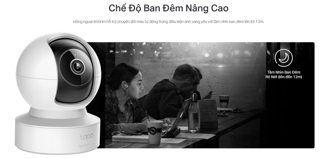 Hình ảnh ban đêm rõ ràng đến 12m, nhờ đèn hồng ngoại công suất cao – đảm bảo an ninh 24/7.