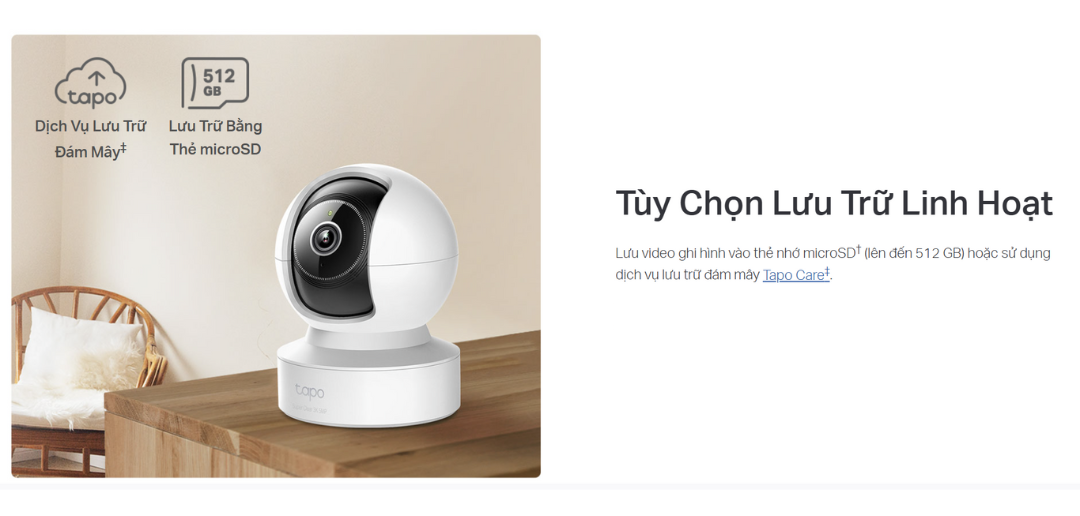 Hỗ trợ thẻ nhớ microSD lên đến 512GB (bán rời), giúp lưu lại video liên tục nhiều ngày, dễ dàng xem lại khi cần.