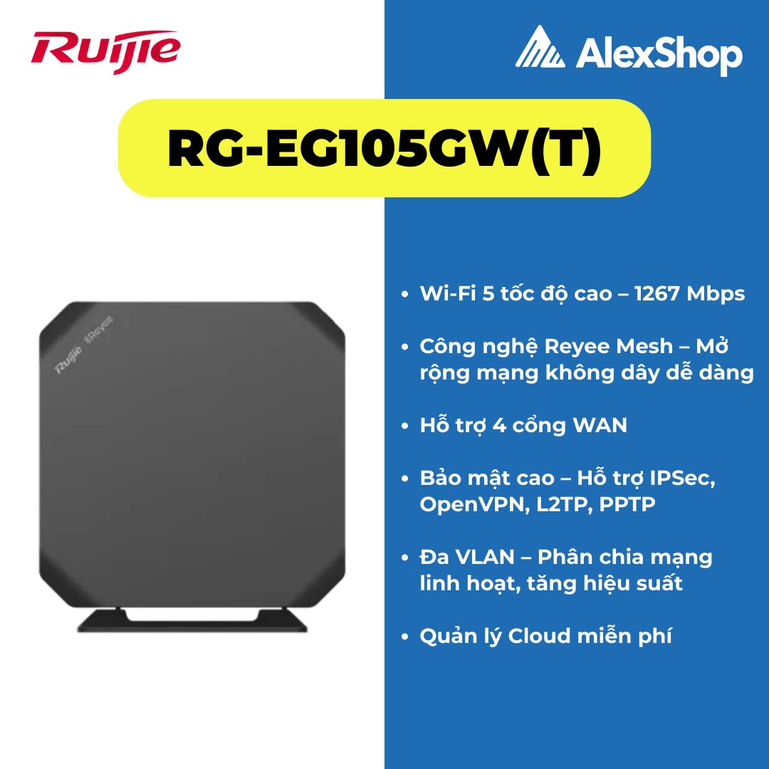 ✔ Hỗ trợ Wi-Fi 5 tốc độ lên đến 1267 Mbps (867 Mbps trên băng tần 5 GHz + 400 Mbps trên băng tần 2.4 GHz), giúp truy cập internet nhanh, đáp ứng nhu cầu làm việc và giải trí.