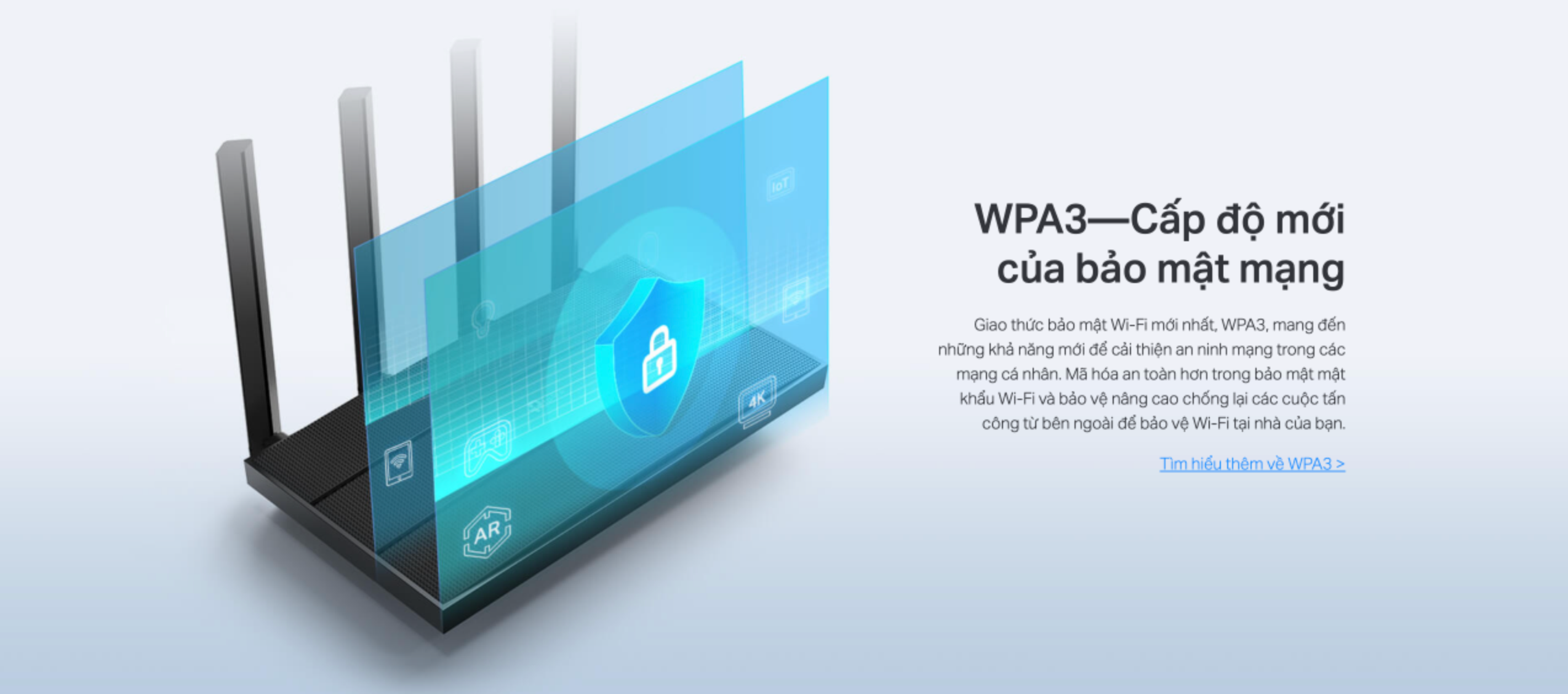 | Mã hóa Wi-Fi | WPA2-PSK WPA2-PSK/WPA-PSK WPA3-Personal WPA3-Personal/WPA2-PSK WPA2-Enterprise Mã hóa WPA/WPA2-Enterprise |