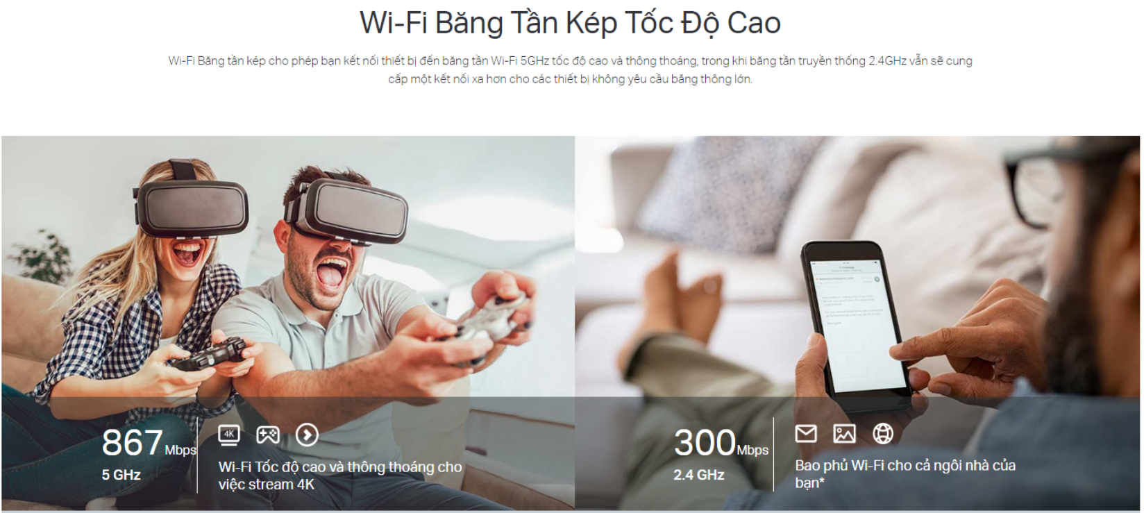 | Tốc độ | 867 Mbps (băng tần 5GHz) và 300 Mbps (băng tần 2.4GHz) |