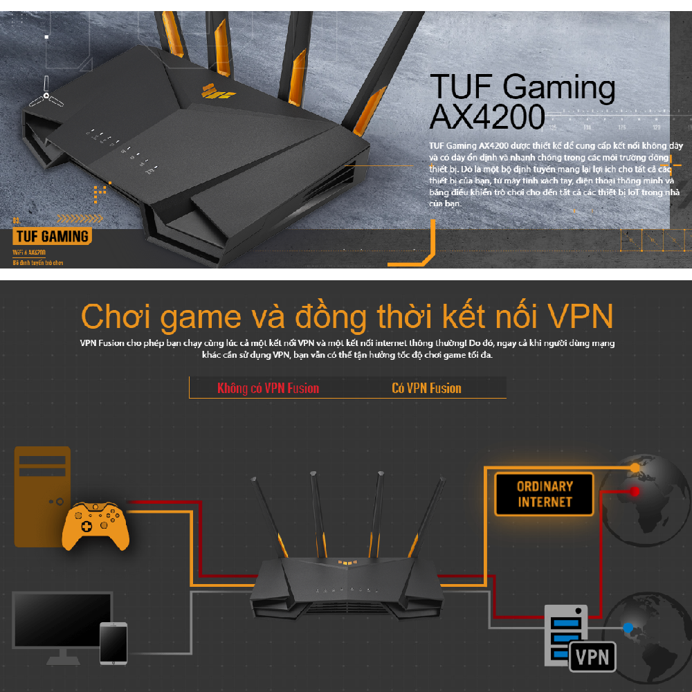 Router Asus TUF Gaming AX4200 – Hiệu năng mạnh mẽ cho gaming và đa thiết bị