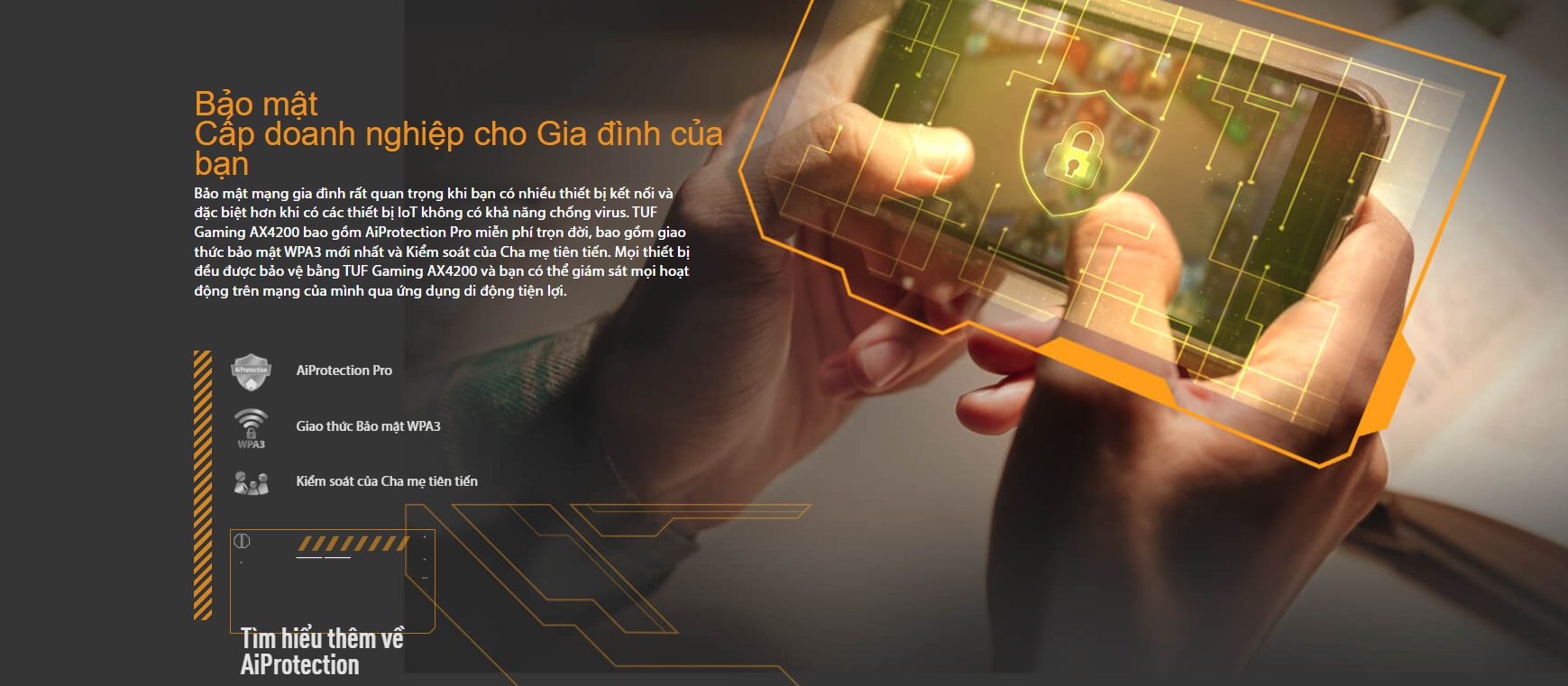 Tích hợp AiProtection Pro giúp bảo vệ hệ thống mạng khỏi các mối đe dọa và đảm bảo an toàn cho dữ liệu người dùng.