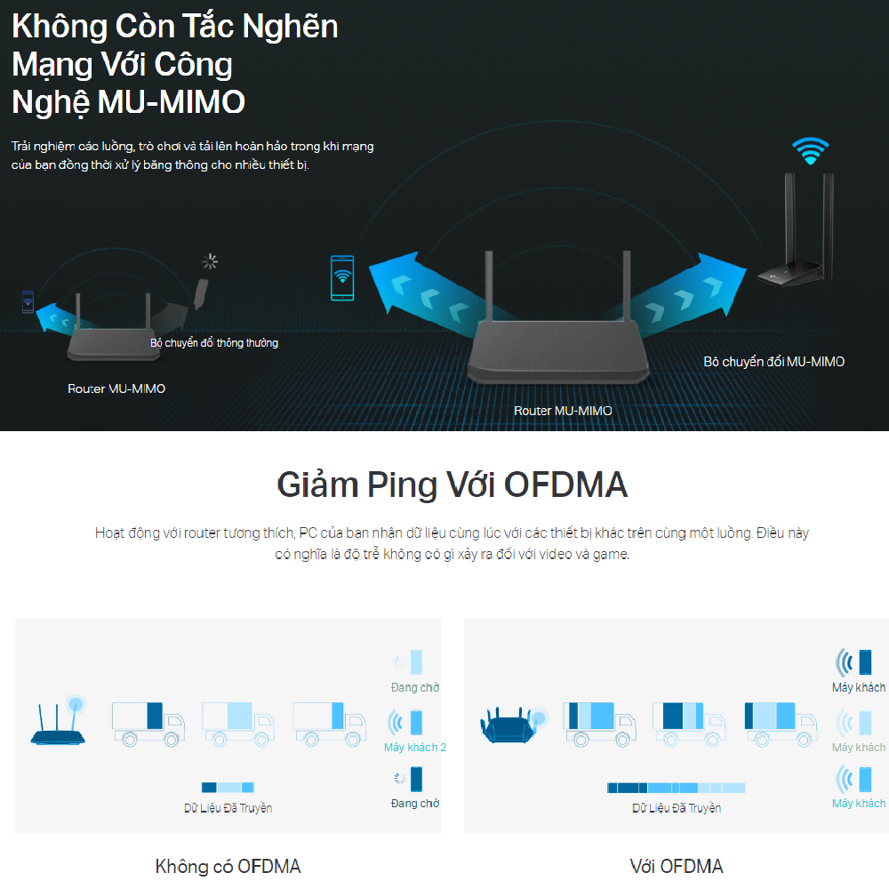 - MU-MIMO – Duy trì tốc độ cao khi tải xuống và tải lên ngay cả khi các thiết bị khác tiêu tốn nhiều băng thông của bạn