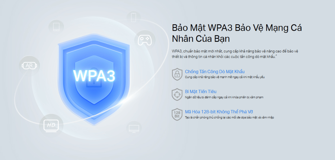 🔐 Bảo Mật Nâng Cao: Được trang bị chuẩn bảo mật WPA3 mới nhất, giúp bảo vệ mật khẩu cá nhân của bạn an toàn hơn bao giờ hết.