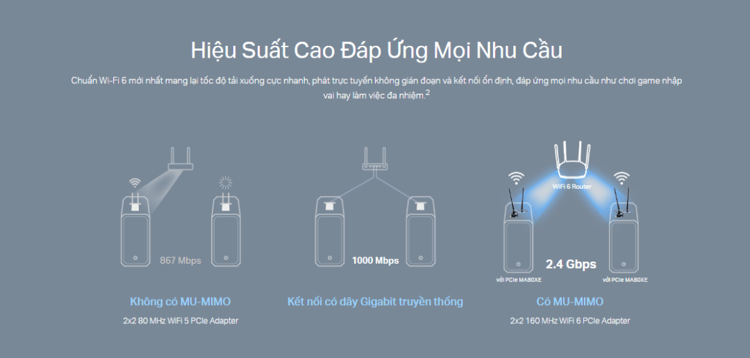 🔄 Tương Thích Ngược: Hỗ trợ đầy đủ các chuẩn 802.11ax/ac/a/b/g/n, đảm bảo kết nối với nhiều thiết bị khác nhau.