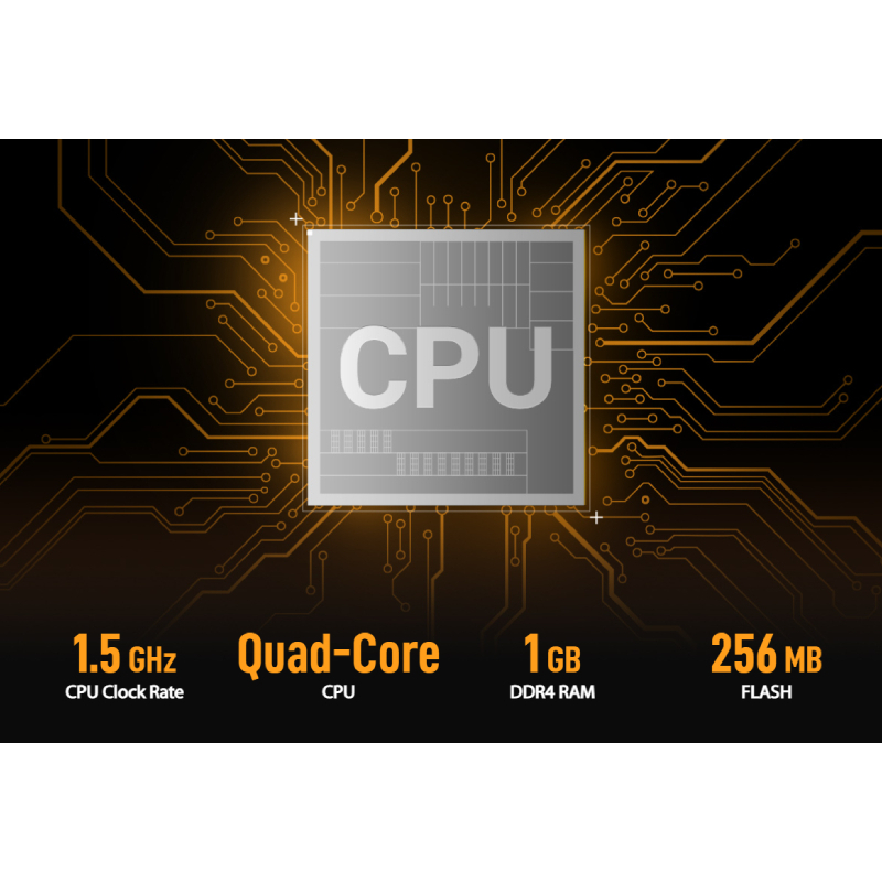 🔧 CPU mạnh & bộ nhớ lớn — chip 4 nhân, 1.5 GHz + RAM DDR4 1 GB giúp xử lý song song nhiều thiết bị / tác vụ.
