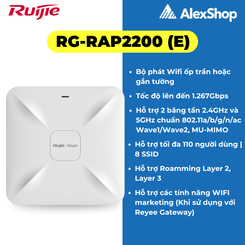 – Hỗ trợ các tính năng WIFI marketing (Khi sử dụng với Reyee Gateway)