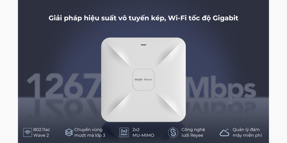 – Hỗ trợ 2 băng tần 2.4GHz và 5GHz chuẩn 802.11a/b/g/n/ac Wave1/Wave2, MU-MIMO