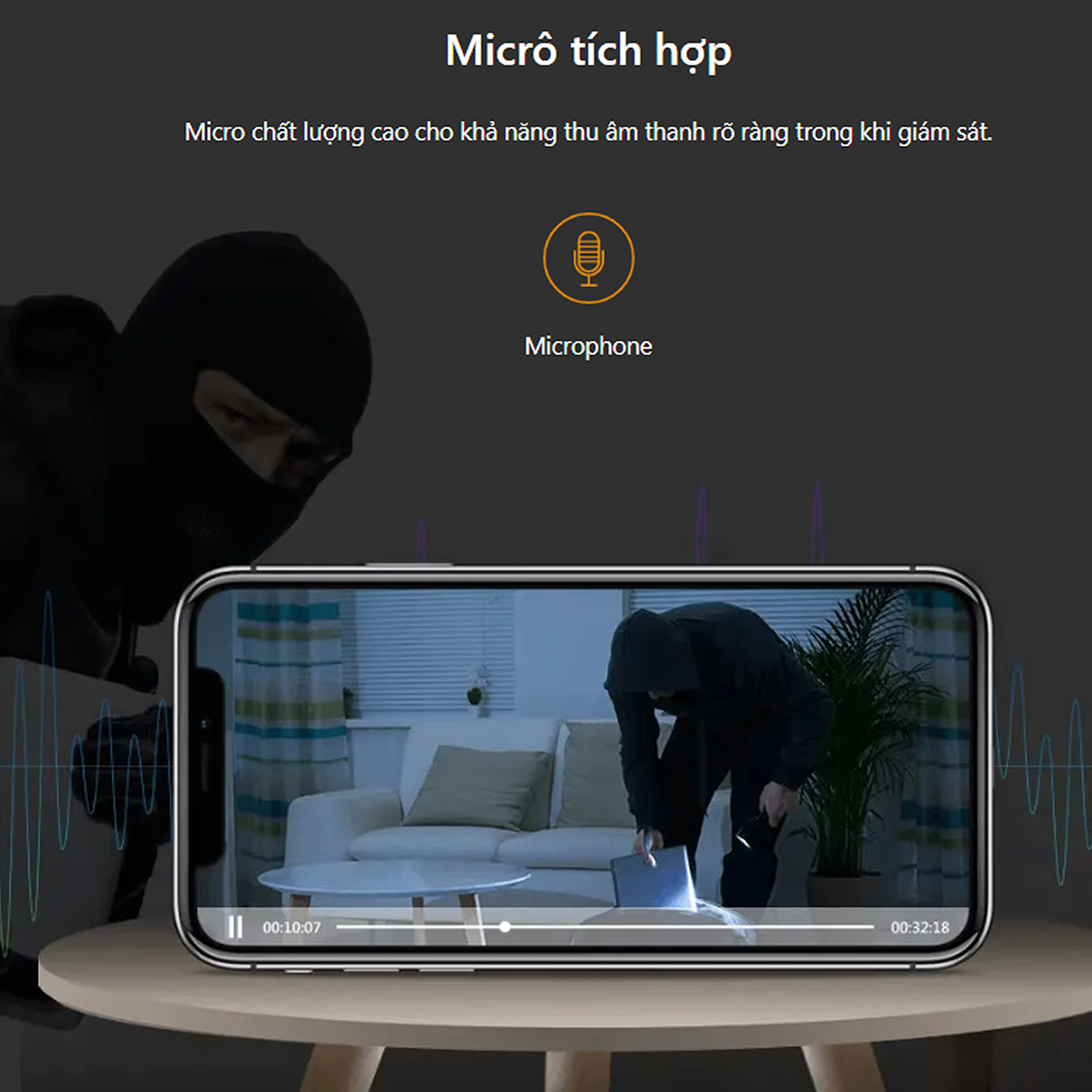 👉 Tích hợp Microphone: Micro chất lượng cao, đảm bảo âm thanh thu được rõ ràng khi giám sát.