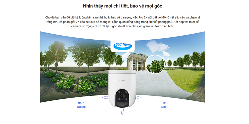 Bảo vệ không gian ngoài trời của bạn với H8c Pro 2K tiên tiến của chúng tôi, tạo ra tầm nhìn cấp độ kế tiếp với độ phân giải 2K ấn tượng. Với chỉ một camera với độ bao phủ toàn cảnh 360 độ, mỗi chi tiết được làm sống động với một cái nhìn sắc nét, và hầu như không một góc nào thoát khỏi sự chú ý của bạn.