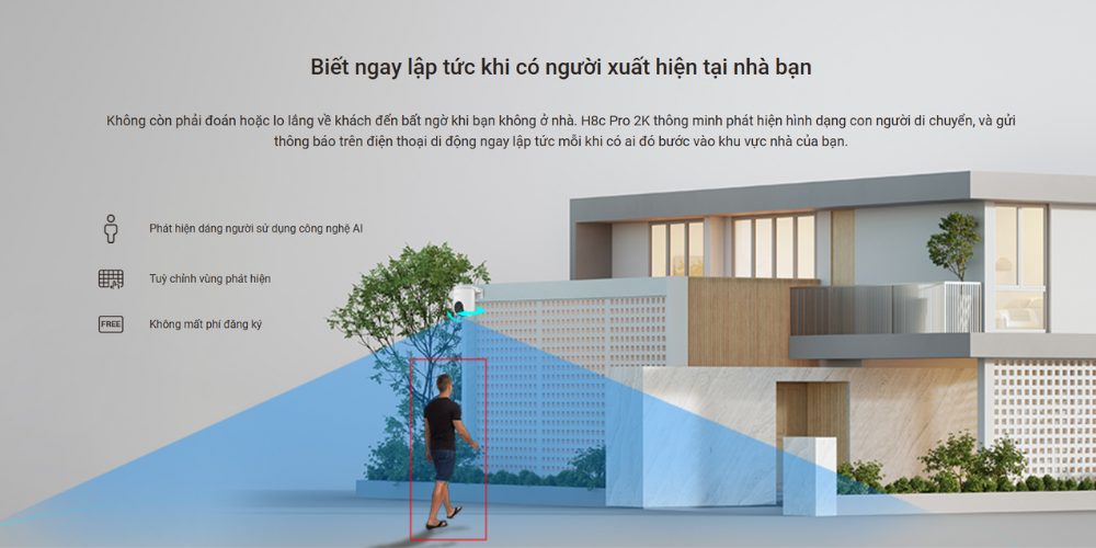 Không cần phải thường xuyên kiểm tra cửa nhà hay lao ra sân sau khi nghe những tiếng động kỳ lạ. H8C Pro 2K giúp bạn nắm bắt và quan sát từng người từng phương tiện ghé thăm nhà bạn. Camera nhận dạng và thông báo chính xác về chuyển động của người và phương tiện, giúp giảm thiểu các cảnh báo giả do các vật thể chuyển động khác như lá rơi, hay rèm cửa bay,…