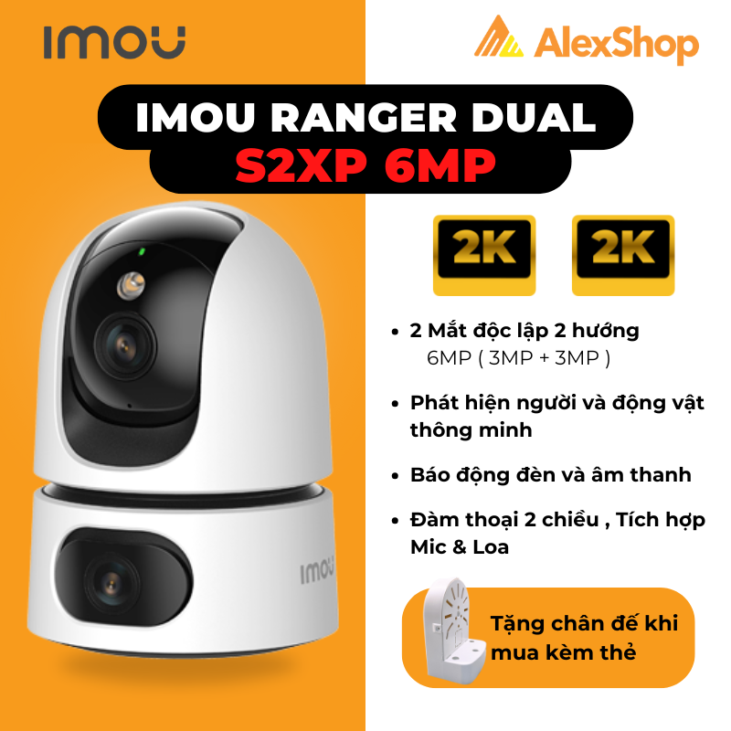 - Camera wifi IMOU Ranger Dual 6MP là 2 mắt cung cấp khả năng giám sát trực tiếp và toàn cảnh trong nhà. Camera có 2 ống kính với độ phân giải 6.0MP (3.0 MP cho ống kính cố định và 3.0 MP cho ống kính quay quét).