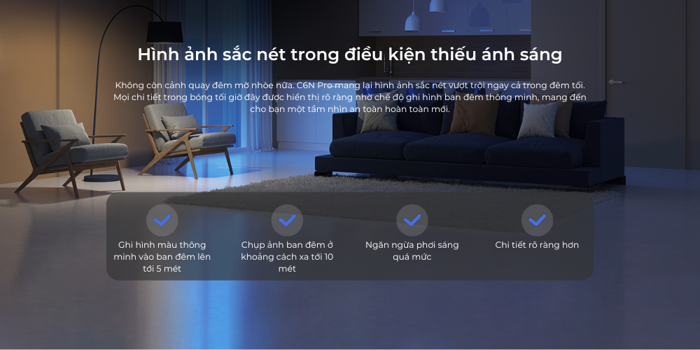 Đây chính là nơi EZVIZ C6N Pro thực sự "out trình". Trong khi hầu hết các camera cùng tầm giá của IMOU hay Tapo chỉ cung cấp hình ảnh hồng ngoại trắng đen mờ ảo vào ban đêm, thì C6N Pro lại sở hữu chế độ Smart Color Night Vision.