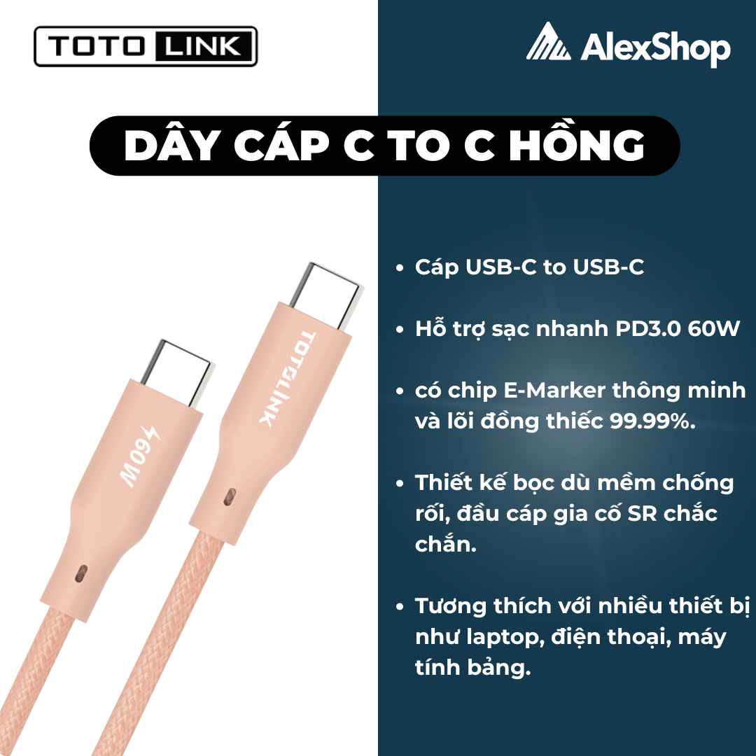 Cáp sạc nhanh USB-C to USB-C PD 60W – Bền bỉ, an toàn, đậm chất riêng