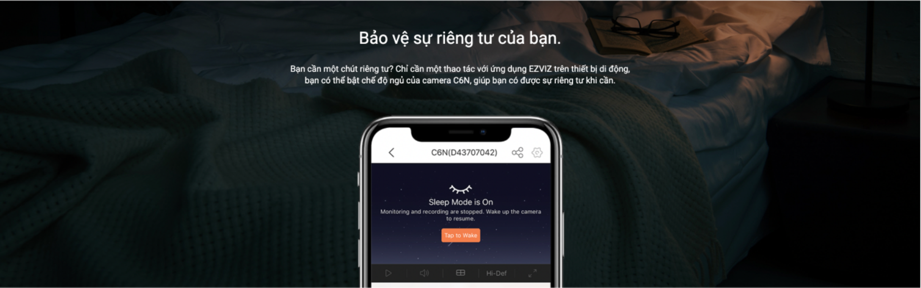 ⭐ Bảo vệ sự riêng tư của bạn: Bạn cần một chút riêng tư? Chỉ cần một thao tác với ứng dụng Ezviz trên thiết bị di động, bạn có thể bật chế độ ngủ của camera C6N, giúp bạn có được sự riêng tư khi cần.