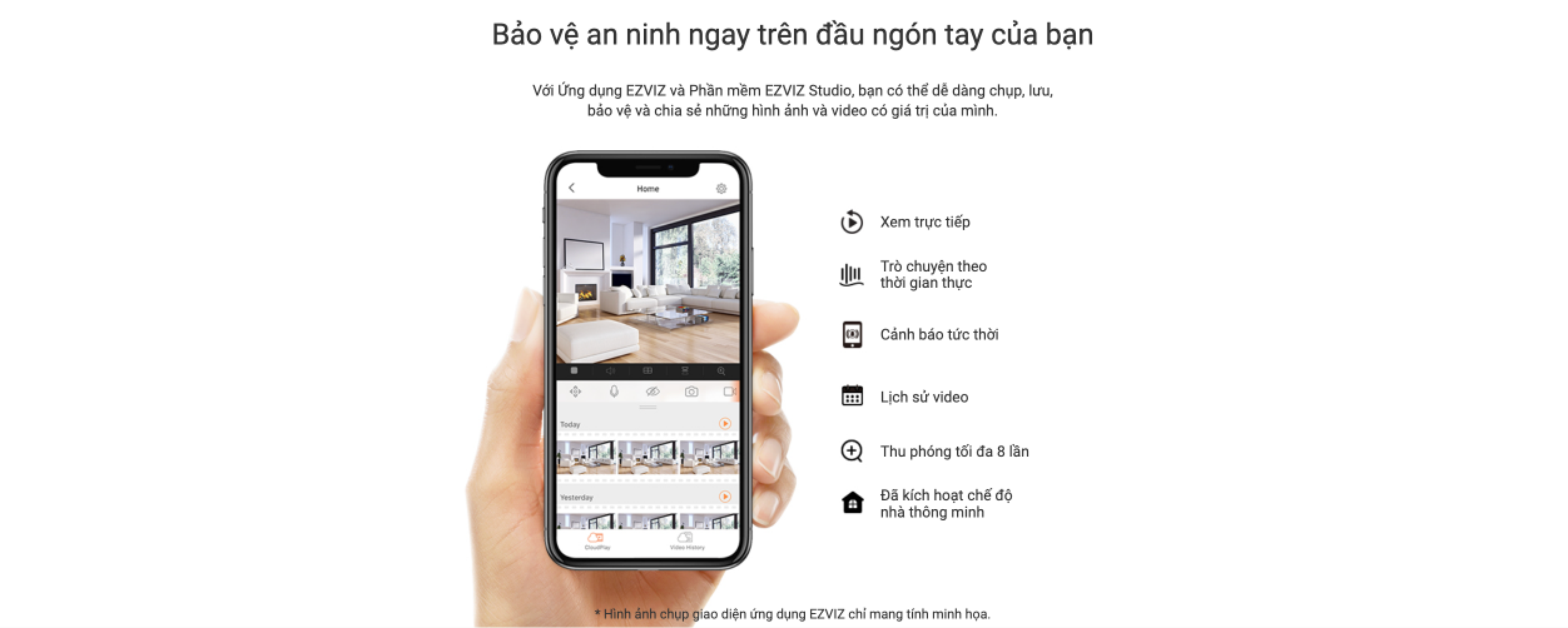 ⭐ Bảo vệ an ninh ngay trên đầu ngón tay của bạn: Với Ứng dụng EZVIZ và Phần mềm EZVIZ Studio, bạn có thể dễ dàng chụp, lưu, bảo vệ và chia sẻ những hình ảnh và video có giá trị của mình.