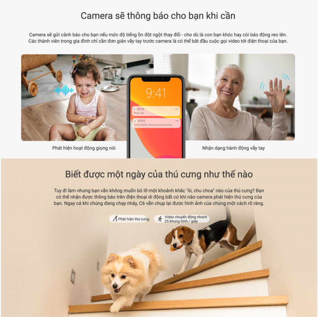 ⭐ Biết được một ngày của thú cưng như thế nào: Tuy đi làm nhưng bạn vẫn không muốn bỏ lỡ một khoảnh khắc "ôi, chu choa" nào của thú cưng? Bạn có thể nhận được thông báo trên điện thoại di động bất cứ khi nào camera phát hiện thú cưng của bạn. Ngay cả khi chúng đang chạy nhảy, H6 vẫn chụp lại được hình ảnh của chúng một cách rõ ràng.