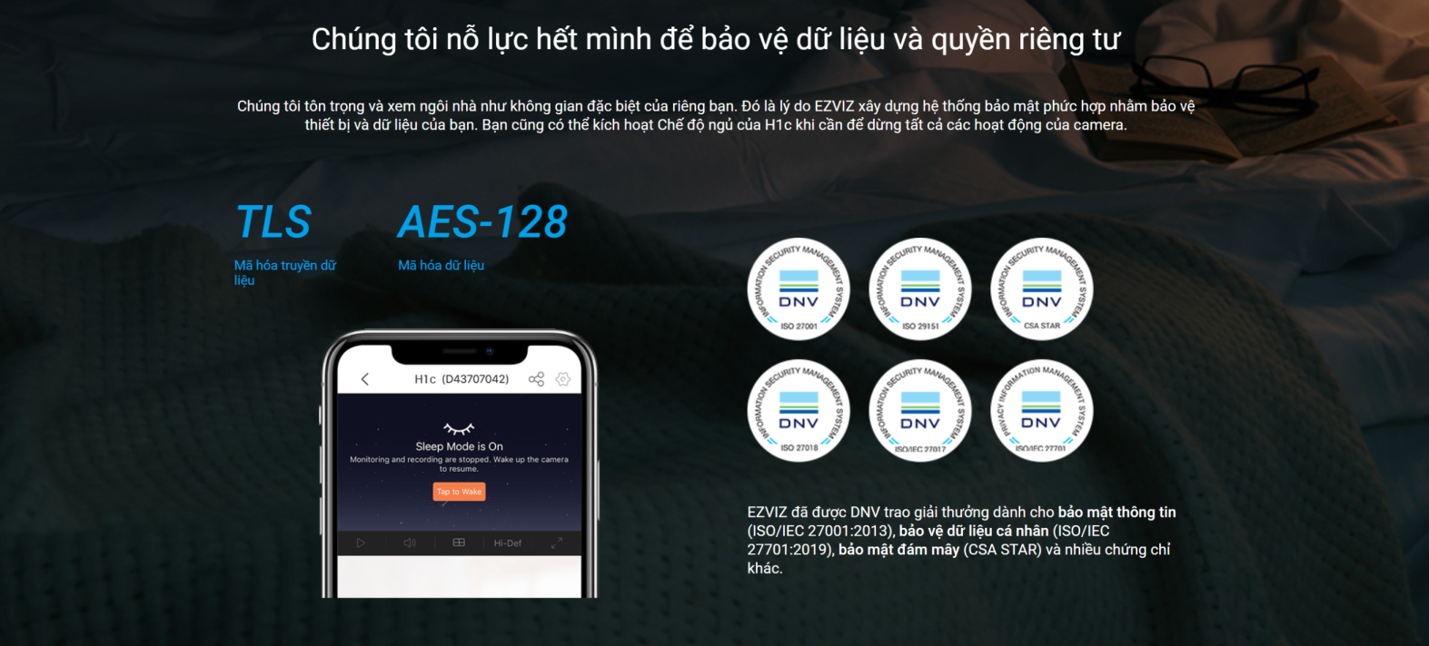 👉 Chúng tôi bảo vệ dữ liệu và quyền riêng tư của bạn: Vì bảo vệ dữ liệu và quyền riêng tư của bạn là ưu tiên hàng đầu của chúng tôi nên việc truyền dữ liệu giữa camera và EZVIZ Cloud được mã hóa từ đầu đến cuối. Chỉ có bạn mới có chìa khóa để giải mã dữ liệu của mình. Để thêm một lớp bảo vệ quyền riêng tư nữa, bạn có thể bật chế độ ngủ trên ứng dụng EZVIZ.