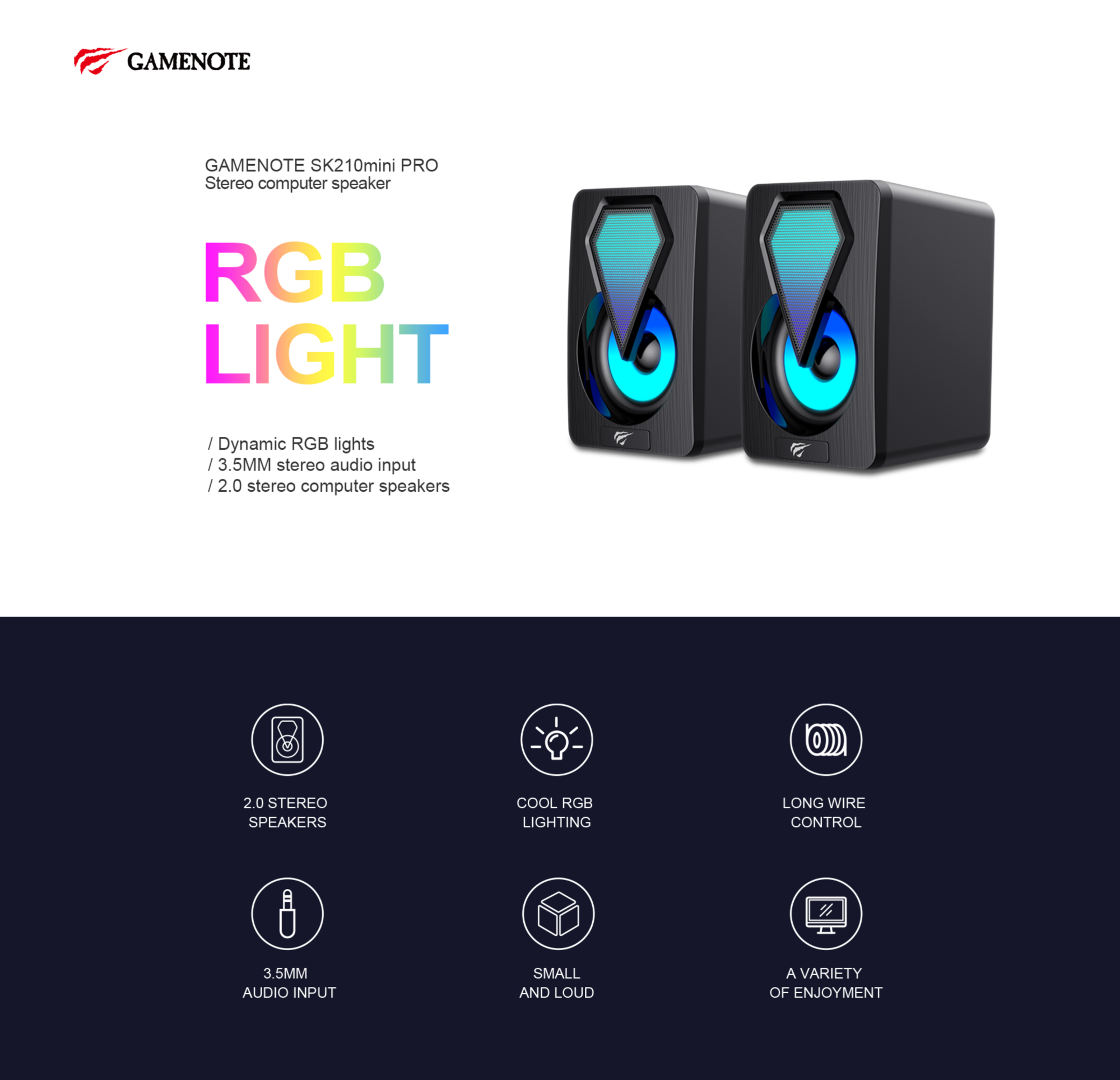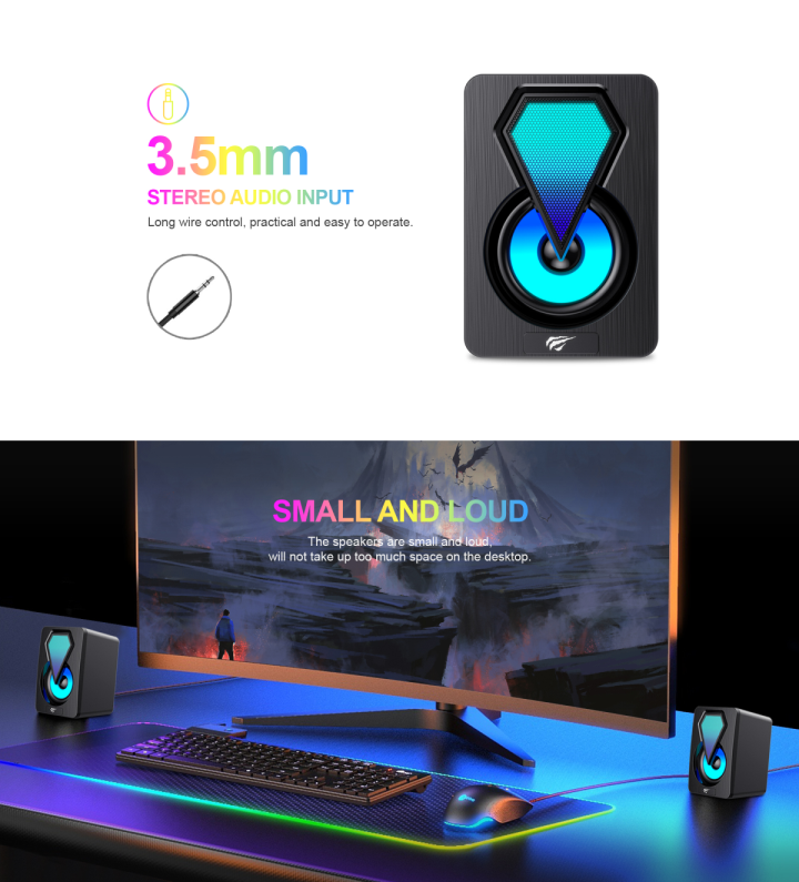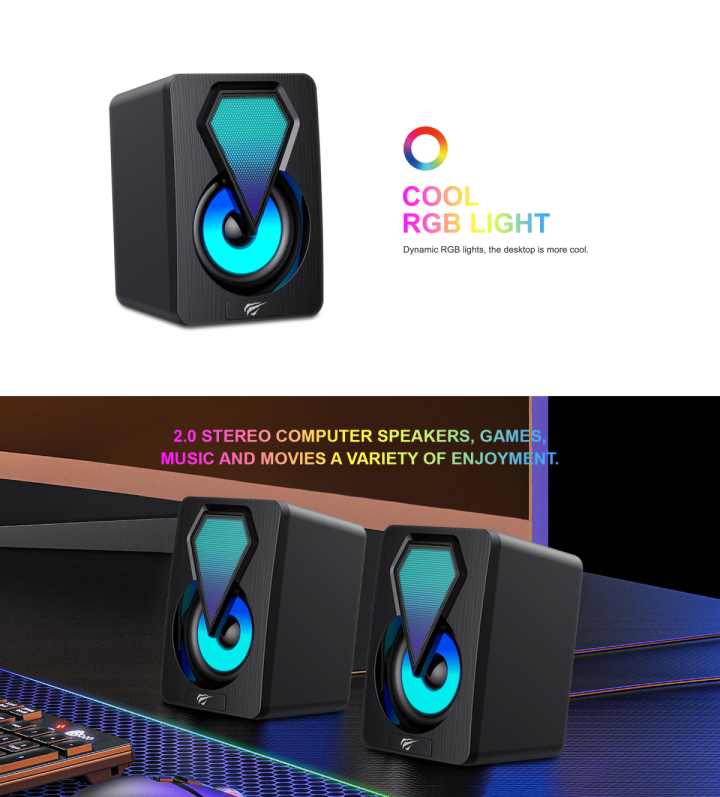 👉 Ánh sáng RGB nổi bật, thiết kế gọn nhẹ nên phù hợp với những căn phòng có diện tích không lớn lắm, loa Havit SK210 mini PRO sẽ biến hóa không gian phòng của bạn sẽ trở nên sống động hơn.
