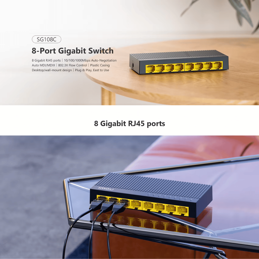 Kết nối linh hoạt: Trang bị 8 cổng Gigabit – lý tưởng cho văn phòng vừa hoặc gia đình nhiều thiết bị thông minh.