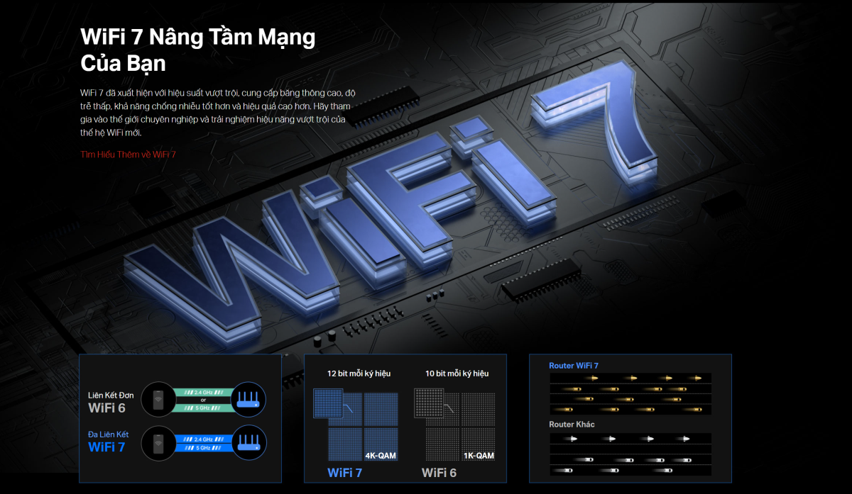 | Tính năng không dây | • Multi-Link Operation (MLO) • 160 MHz Channel • 4K-QAM • Multi-RUs |