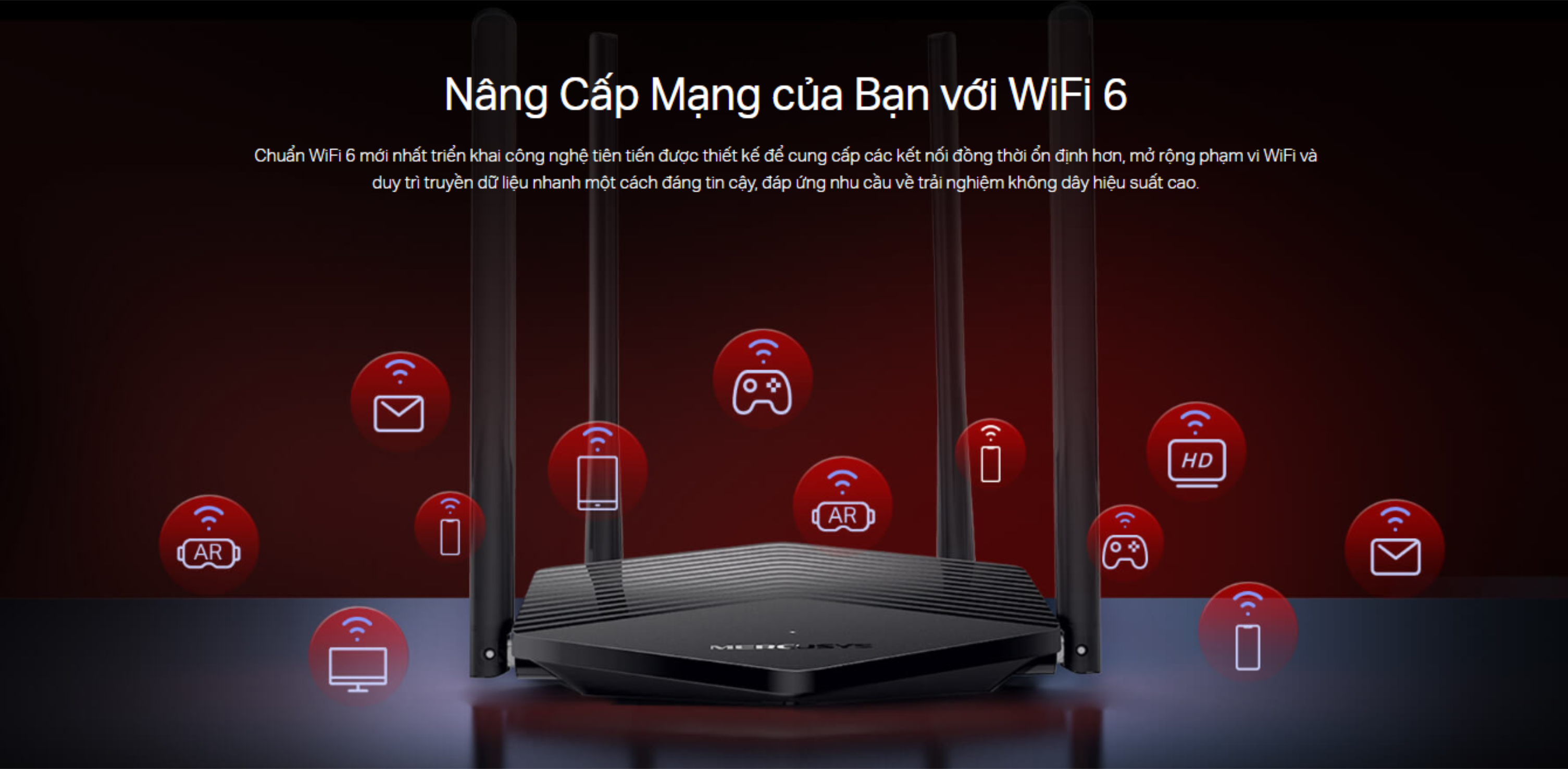 Bộ phát WiFi 6 MERCUSYS MR60X chuẩn tốc độ AX1500