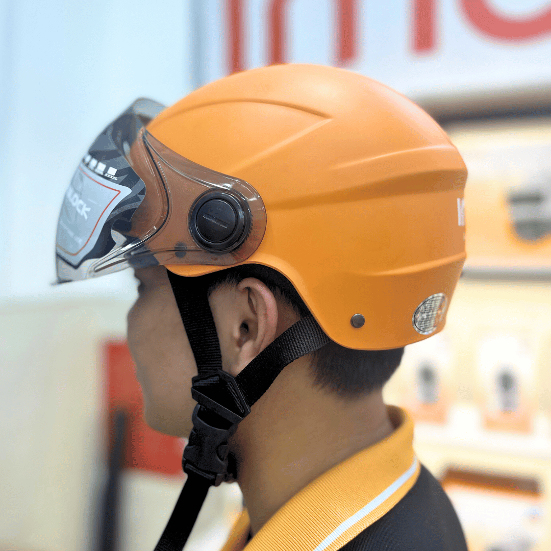 Kết hợp giữa yếu tố an toàn, thời trang và nhận diện thương hiệu, nón bảo hiểm Imou màu cam nhám có kính là lựa chọn hoàn hảo cho nhân viên kỹ thuật, đối tác thương hiệu hoặc sử dụng trong các chương trình branding.