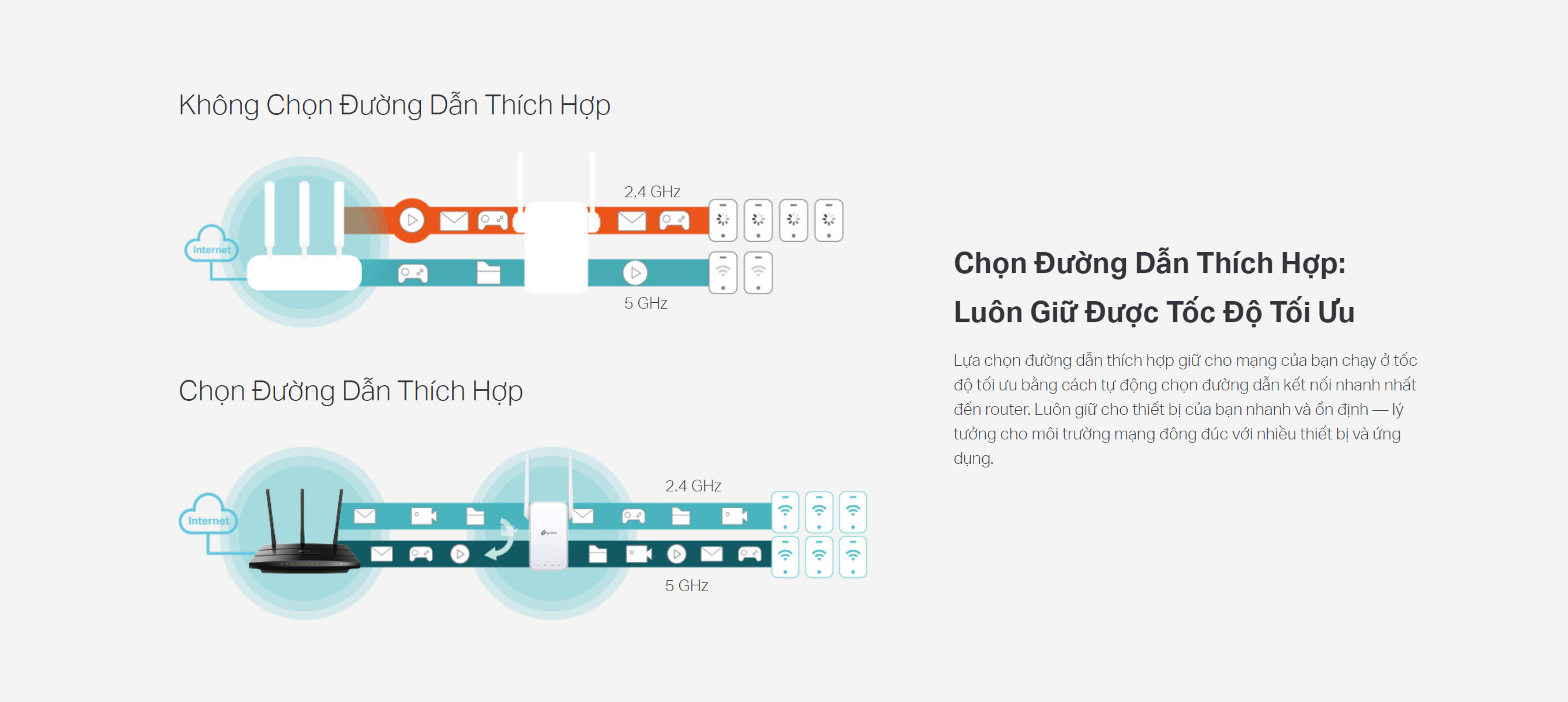 - Chọn Đường Dẫn Thích Hợp – tự động kết nối với đường dẫn kết nối nhanh nhất tới router và chạy ở tốc độ cao nhất.