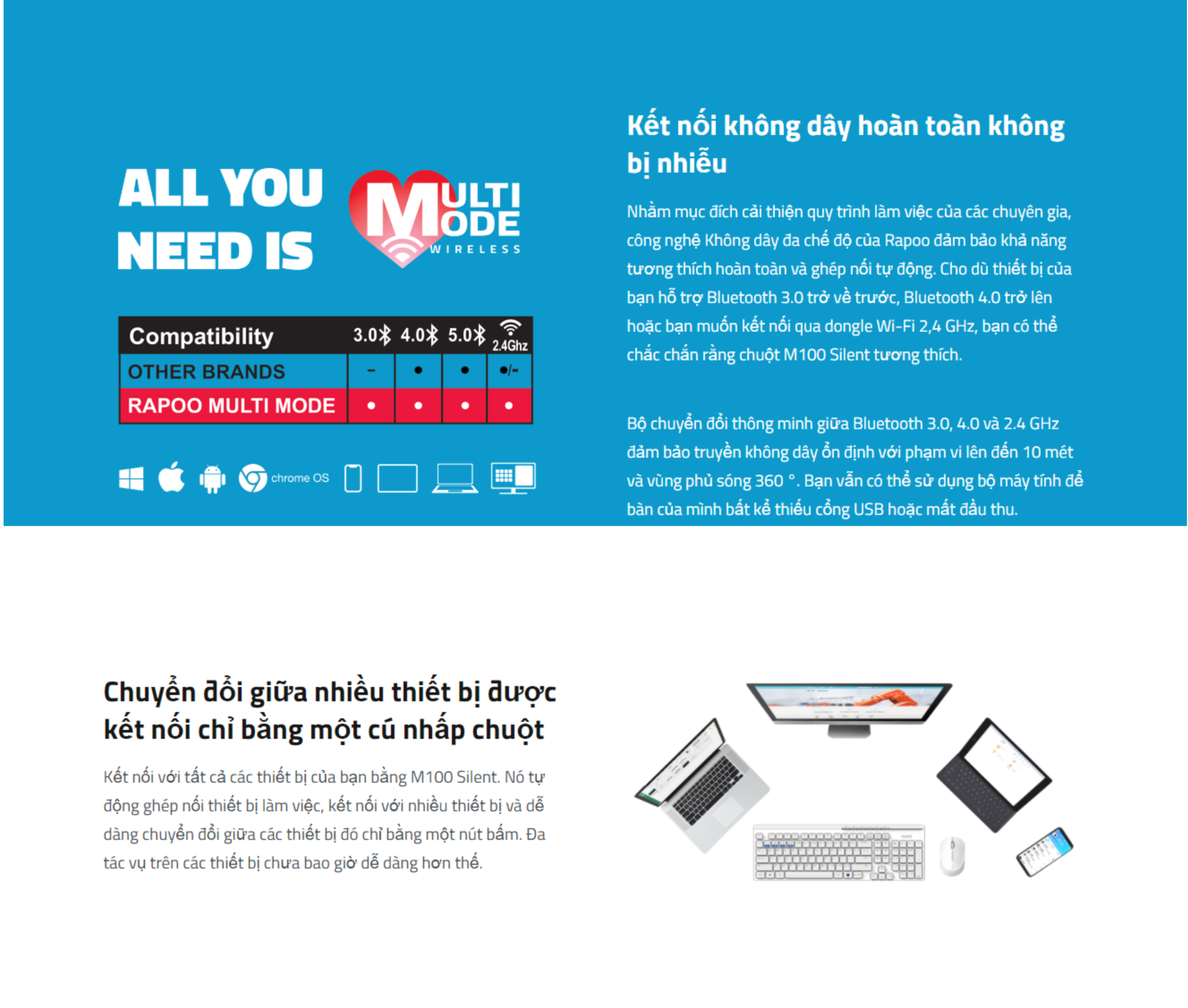 👉 Chuyển đổi giữa nhiều thiết bị được kết nối chỉ bằng một cú nhấp chuột : Kết nối với tất cả các thiết bị của bạn bằng M100 Silent. Nó tự động ghép nối thiết bị làm việc, kết nối với nhiều thiết bị và dễ dàng chuyển đổi giữa các thiết bị đó chỉ bằng một nút bấm. Đa tác vụ trên các thiết bị chưa bao giờ dễ dàng hơn thế.