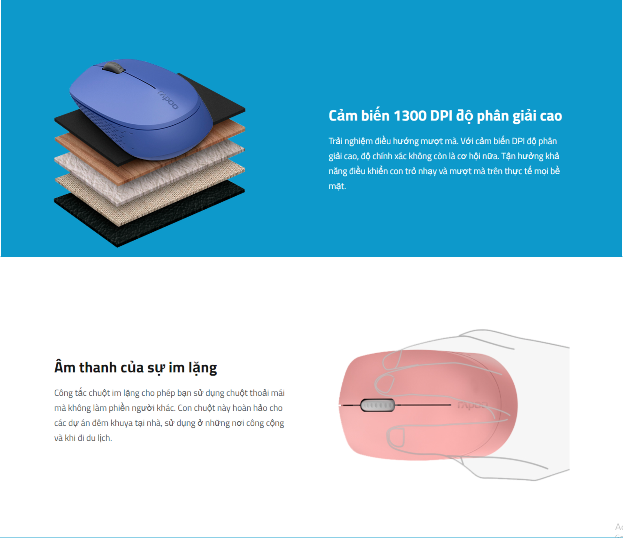 👉 Cảm biến 1300 DPI độ phân giải cao: Trải nghiệm điều hướng mượt mà. Với cảm biến DPI độ phân giải cao, độ chính xác không còn là cơ hội nữa. Tận hưởng khả năng điều khiển con trỏ nhạy và mượt mà trên thực tế mọi bề mặt.