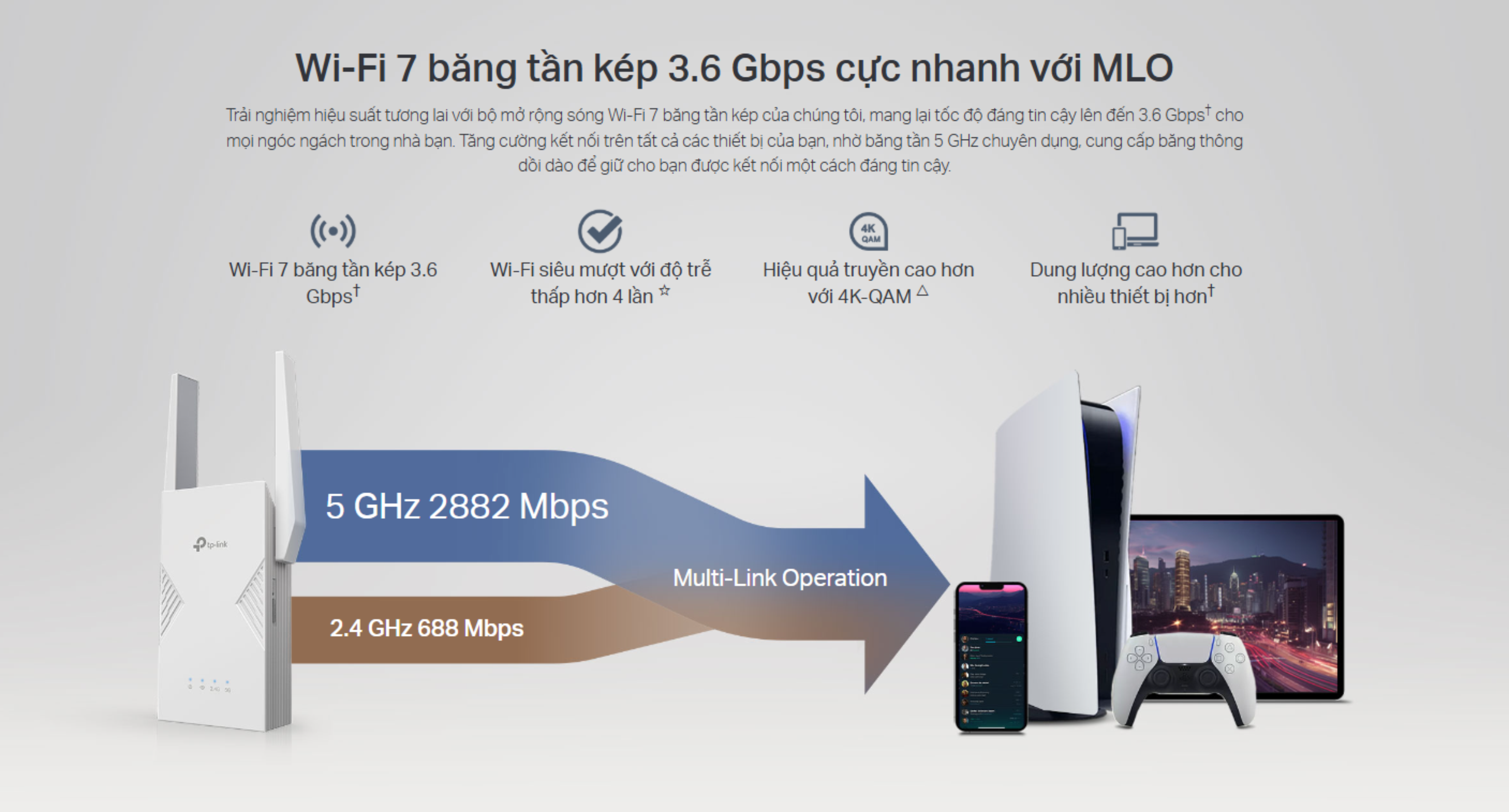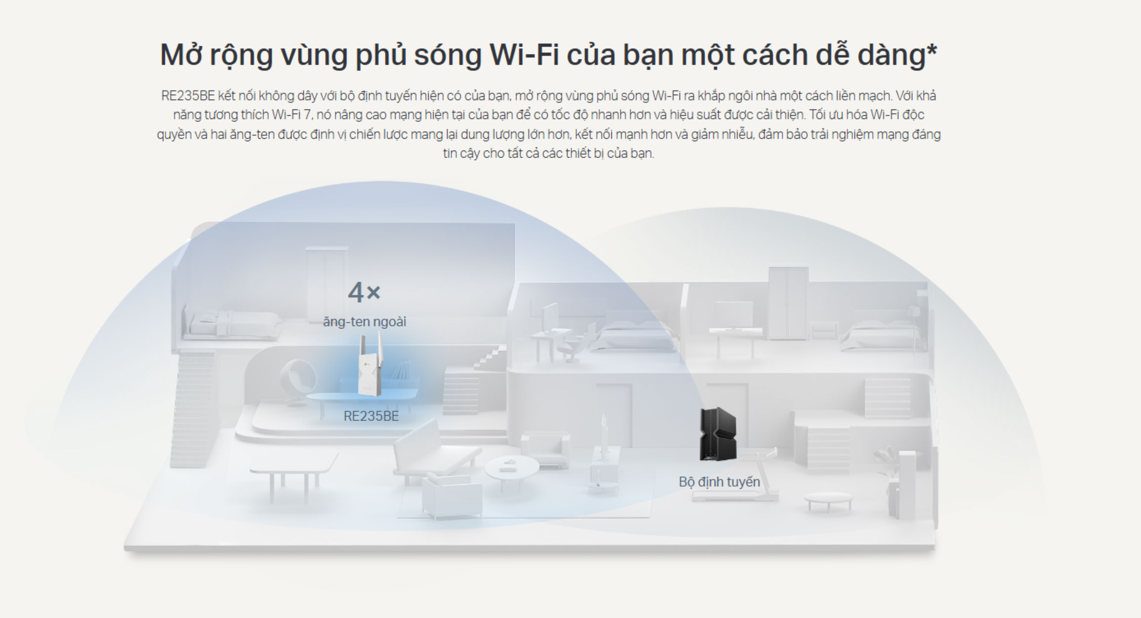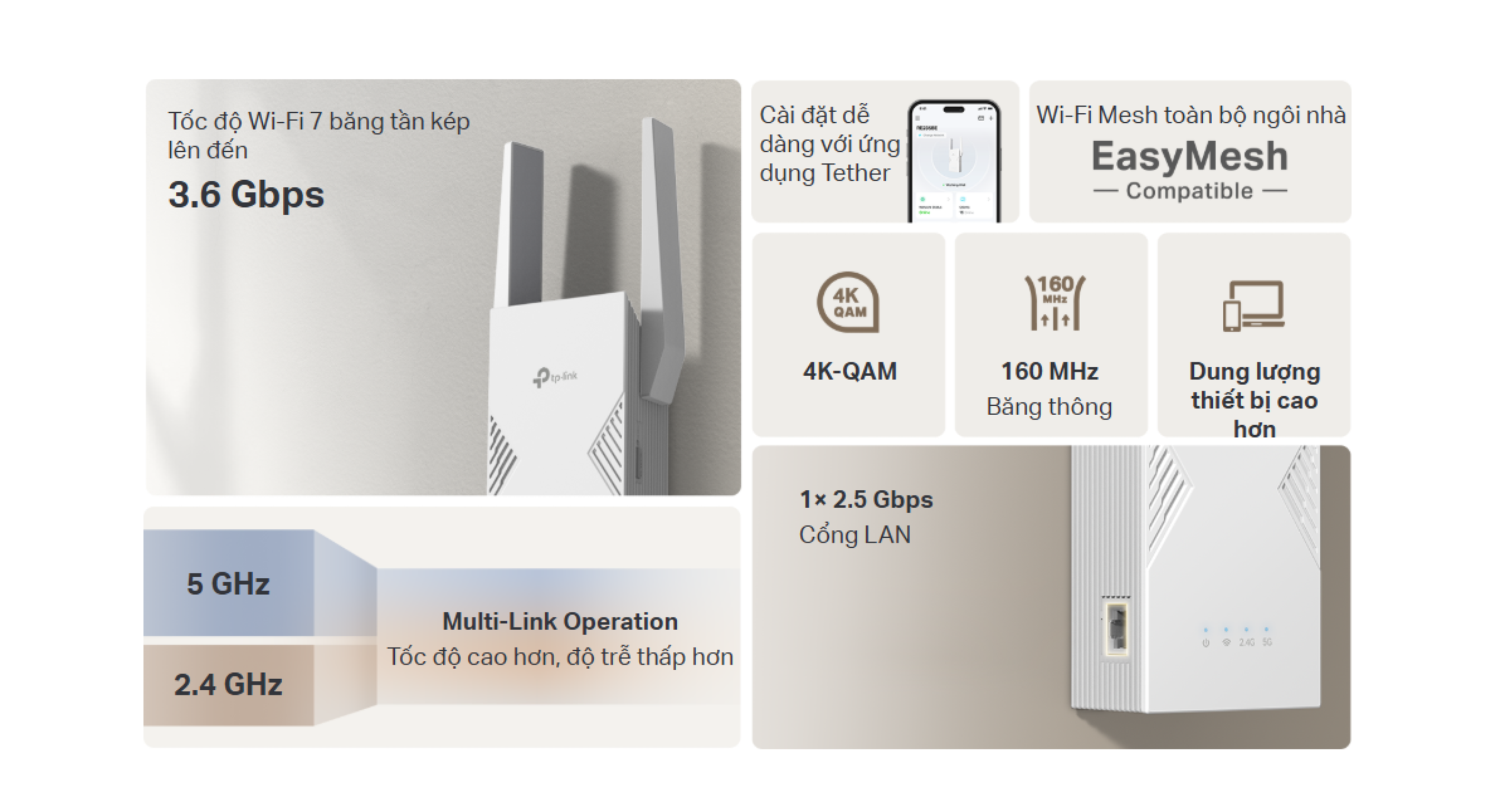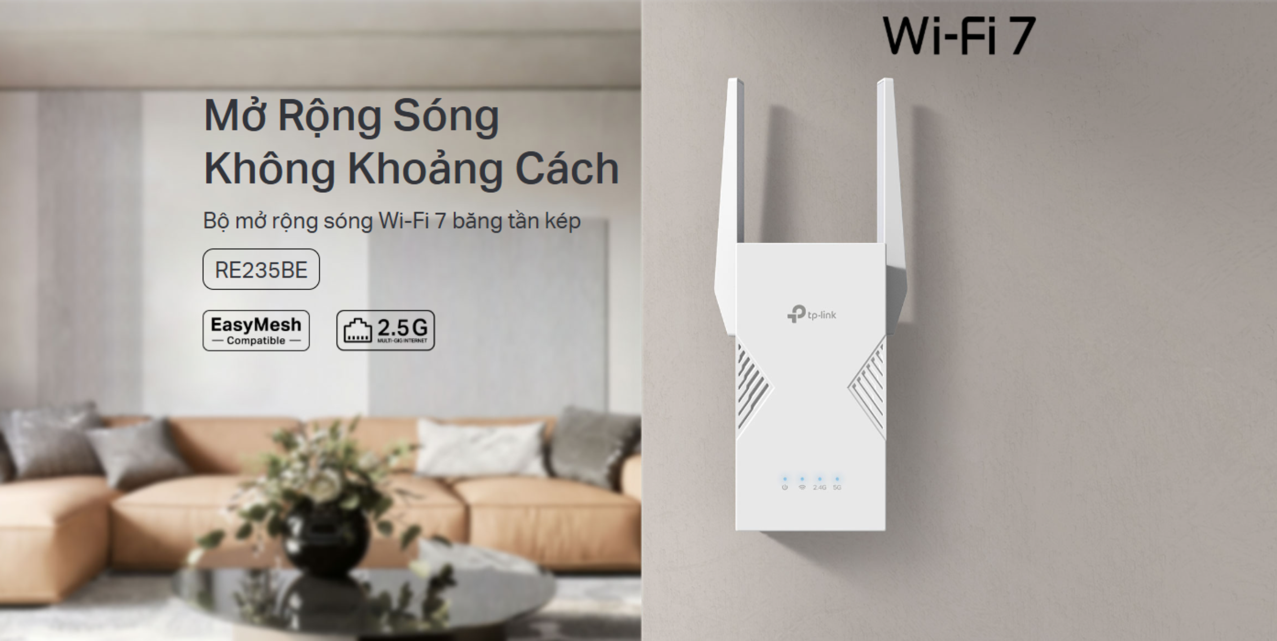 💥 THÔNG TIN SẢN PHẨM RE235BE | Bộ mở rộng sóng Wi-Fi 7 băng tần kép BE3600 💥