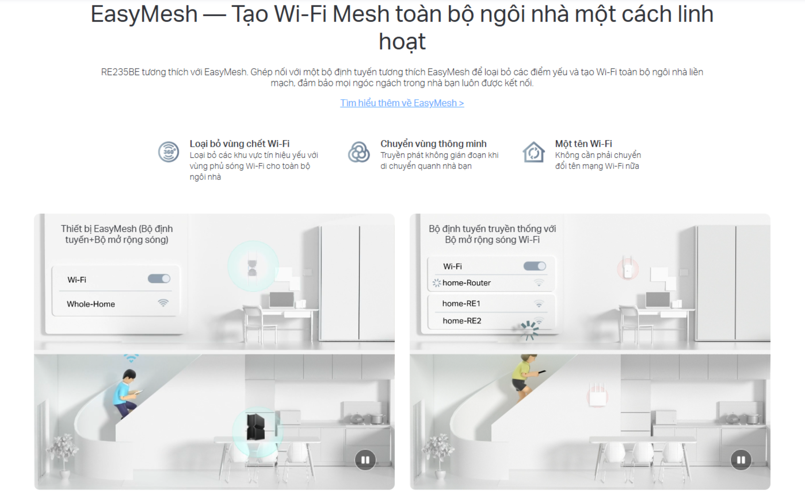 🔸Tương thích với EasyMesh: Tạo mạng Mesh một cách linh hoạt bằng cách kết nối với bộ định tuyến tương thích với EasyMesh để phủ sóng toàn bộ ngôi nhà một cách liền mạch.