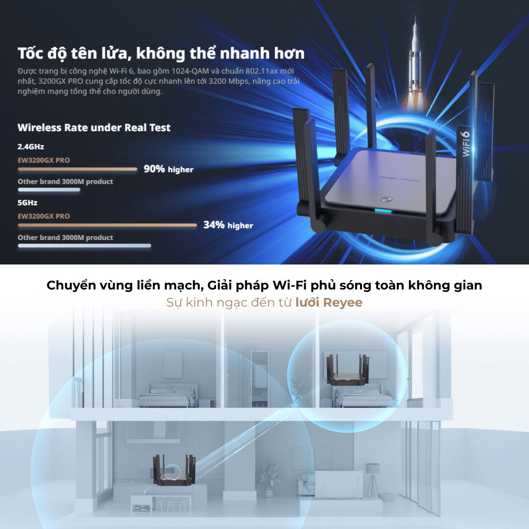 📡 Công nghệ Reyee Mesh – Phủ sóng rộng, kết nối không gián đoạn