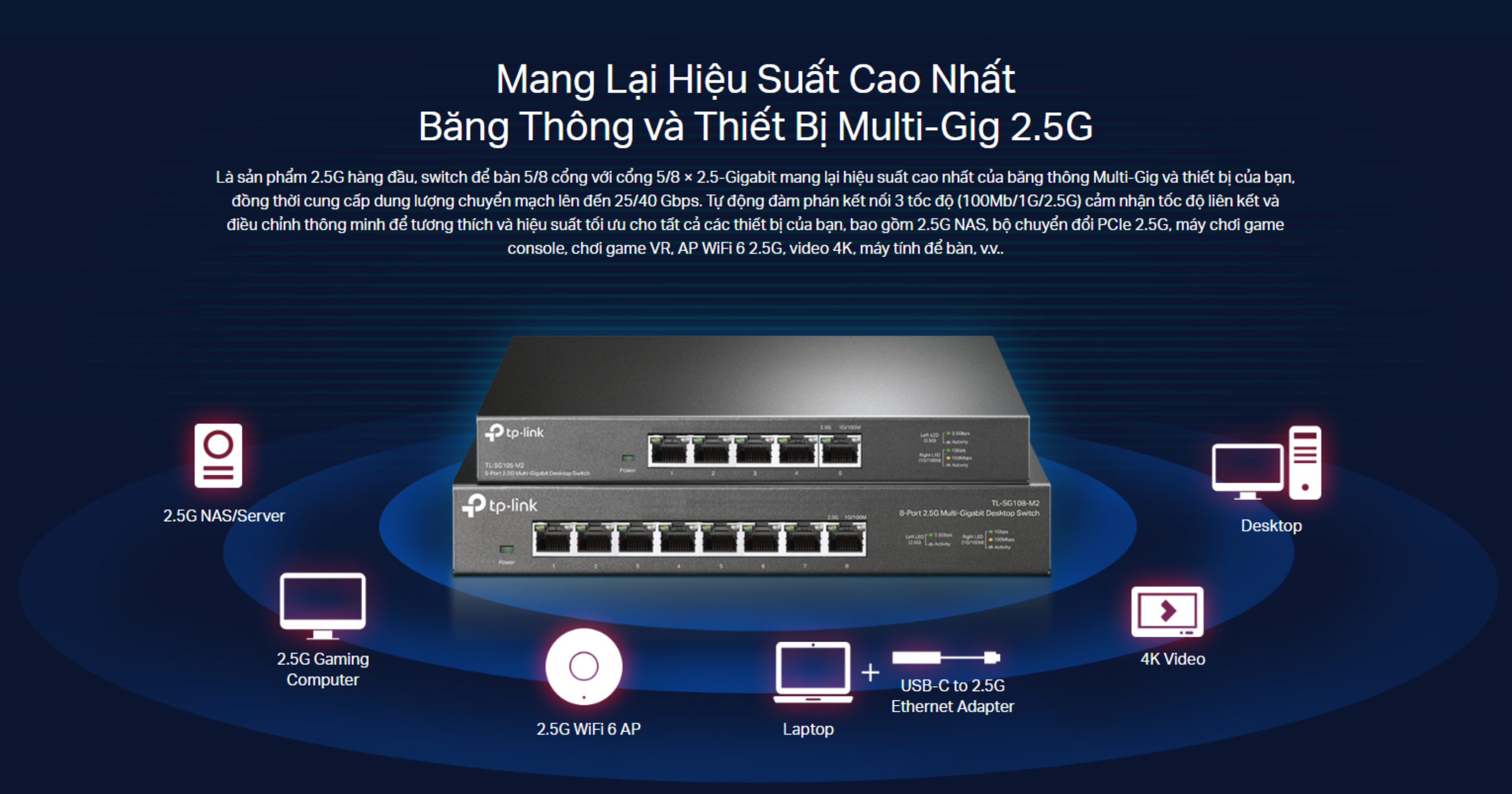👉 Kết Nối Siêu Nhanh: Cung cấp kết nối siêu nhanh với 2.5G NAS, Máy chủ 2.5G, máy tính chơi game, AP WiFi 6 2.5G, video 4K