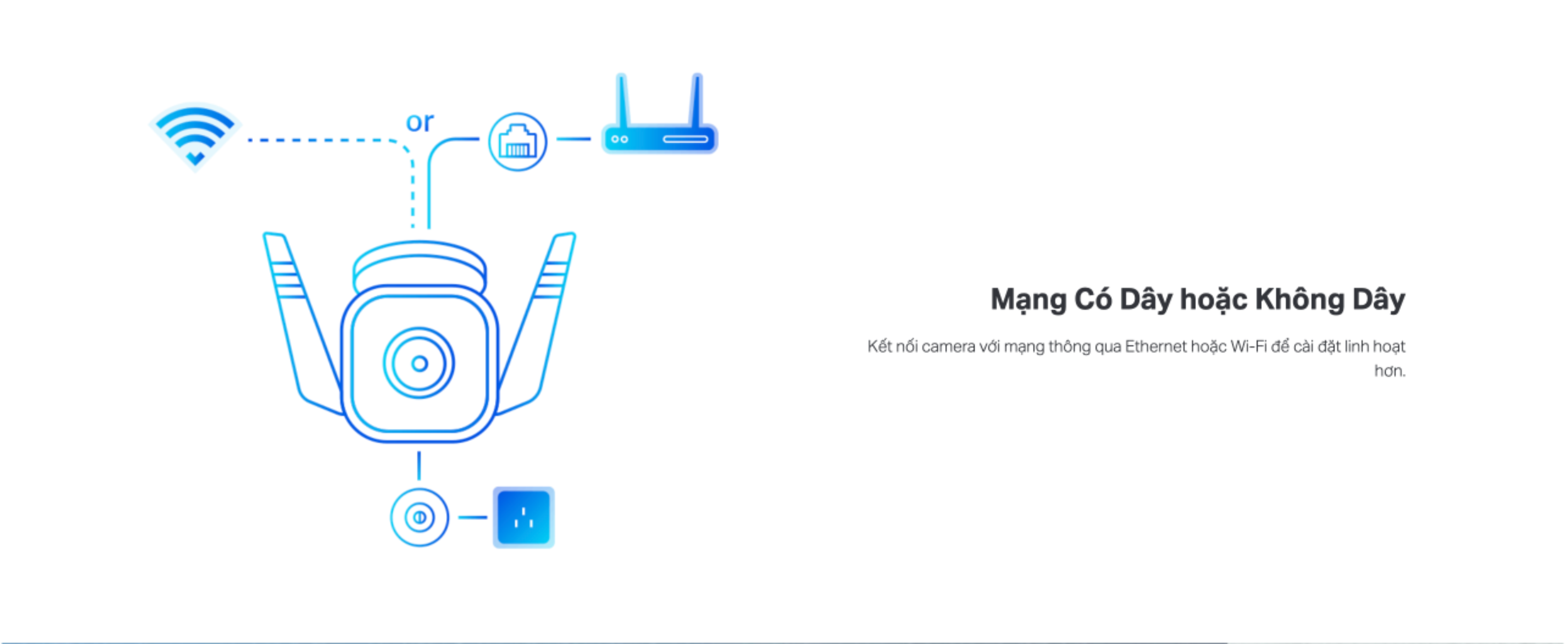 👉 Mạng Có Dây hoặc Không Dây: Kết nối camera với mạng thông qua Ethernet hoặc Wi-Fi để cài đặt linh hoạt hơn.