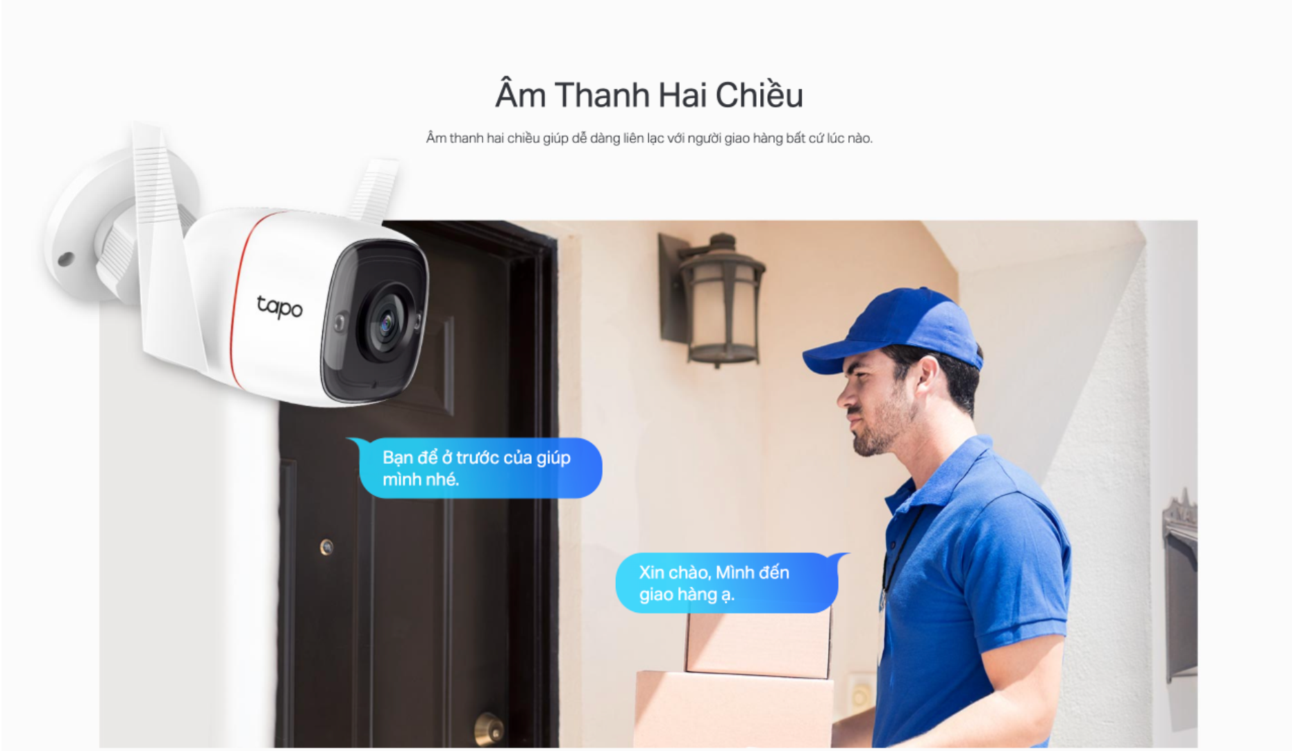 👉 Âm Thanh Hai Chiều: Camera Tapo C310 Âm thanh hai chiều giúp dễ dàng liên lạc với người giao hàng bất cứ lúc nào.