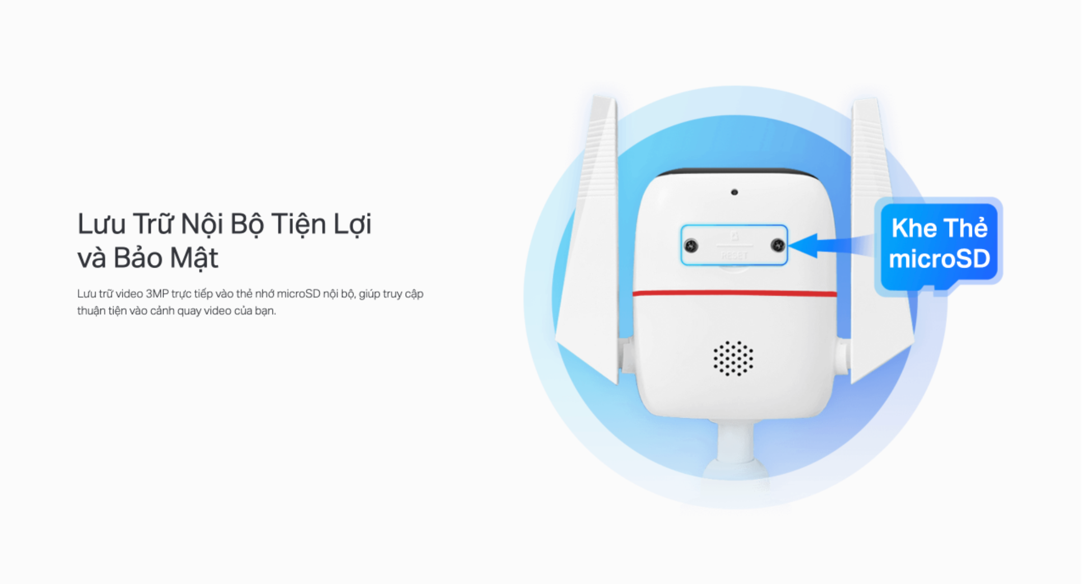 - Lưu Trữ An Toàn: Lưu trữ nội bộ video 3MP lên đến 128 GB trên thẻ nhớ microSD, giúp truy cập thuận tiện vào cảnh quay video của bạn.