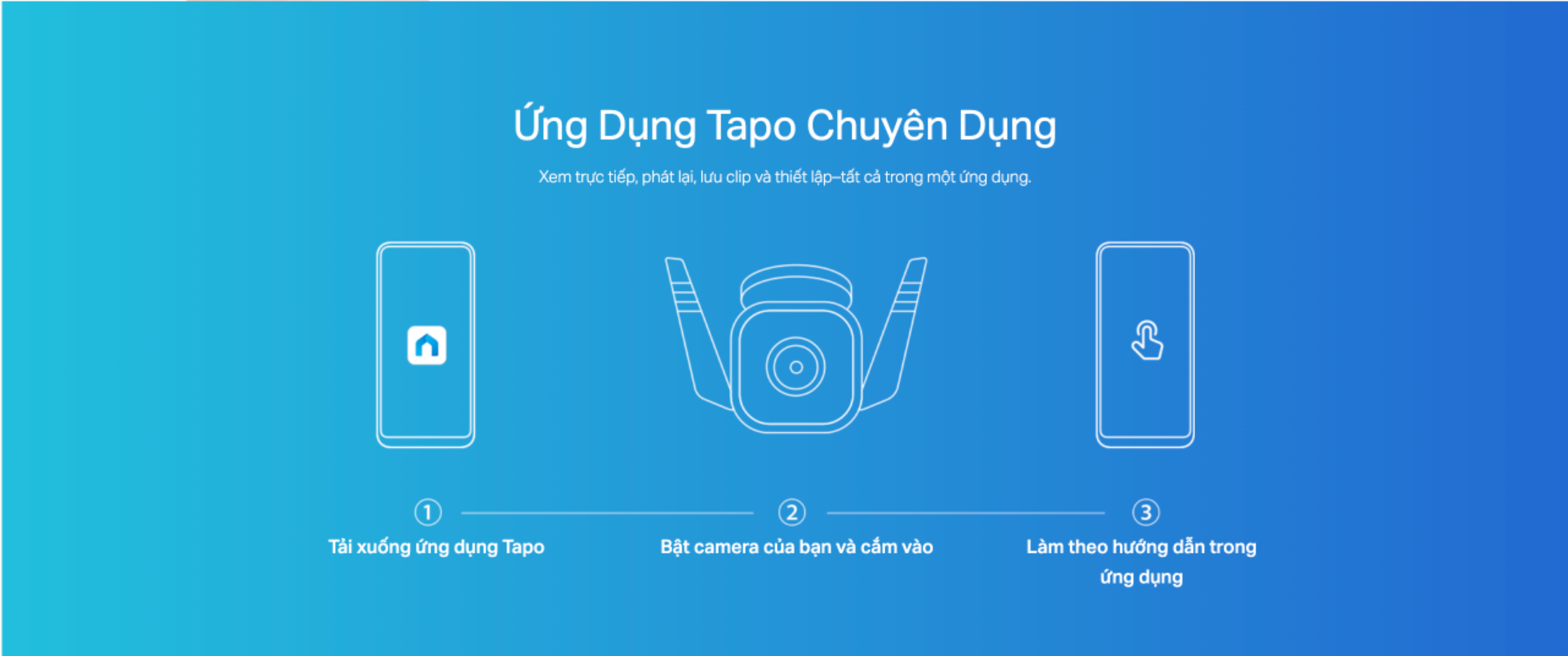 👉 Ứng Dụng Tapo Chuyên Dụng: Xem trực tiếp, phát lại, lưu clip và thiết lập–tất cả trong một ứng dụng.