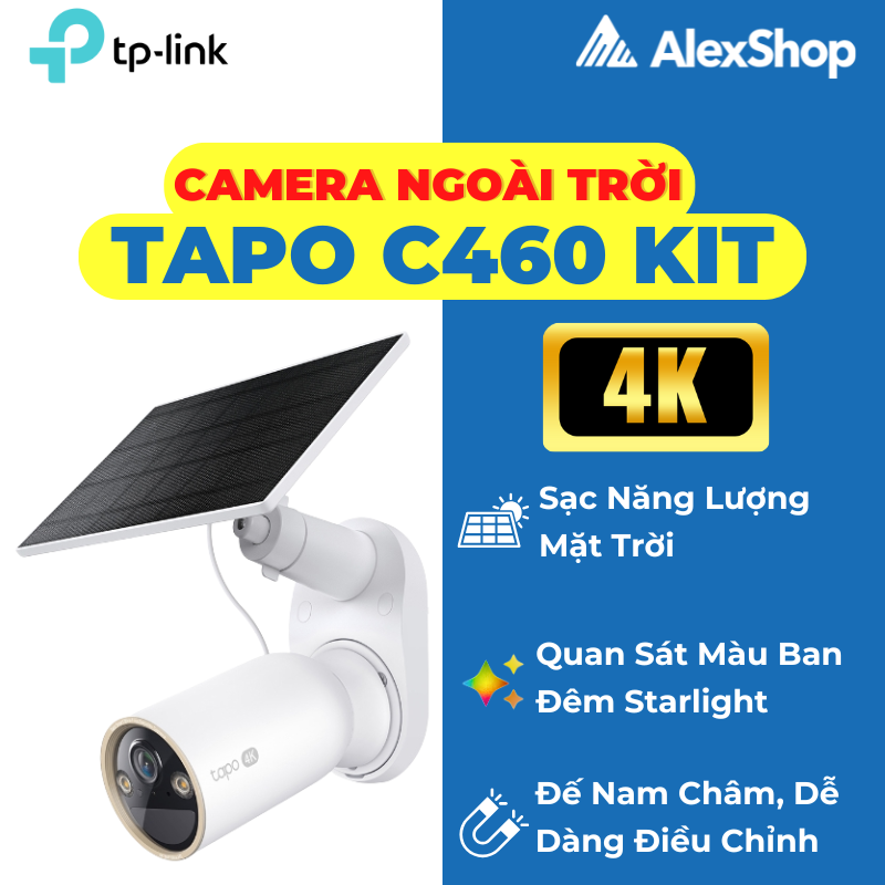 Tapo C460 KIT là camera an ninh ngoài trời với độ phân giải 4K, hỗ trợ góc nhìn rộng và tích hợp năng lượng mặt trời, giúp bạn giám sát không gian xung quanh nhà một cách hiệu quả.