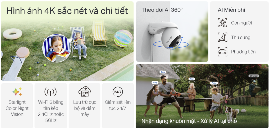 🌙 Nhìn đêm có màu: Cảm biến hồng ngoại và đèn chiếu sáng tích hợp cho hình ảnh màu sắc rõ nét ngay cả trong điều kiện ánh sáng yếu.