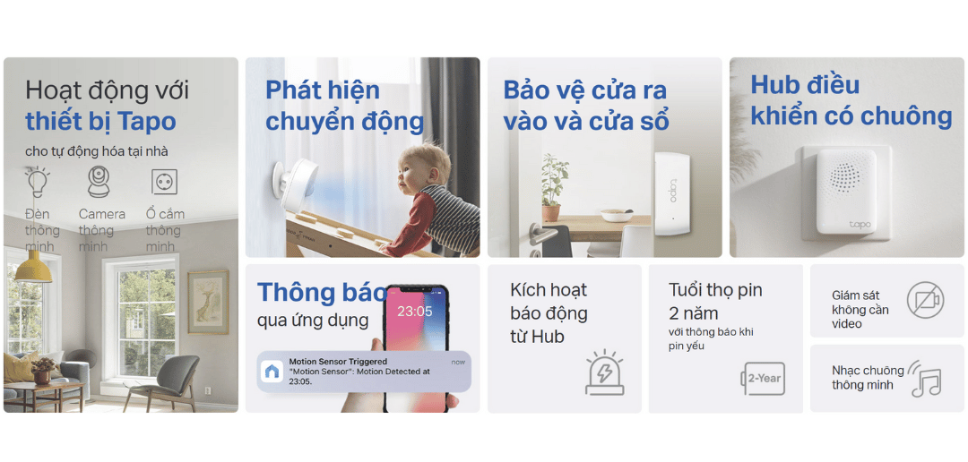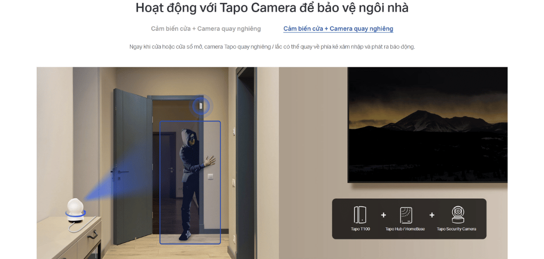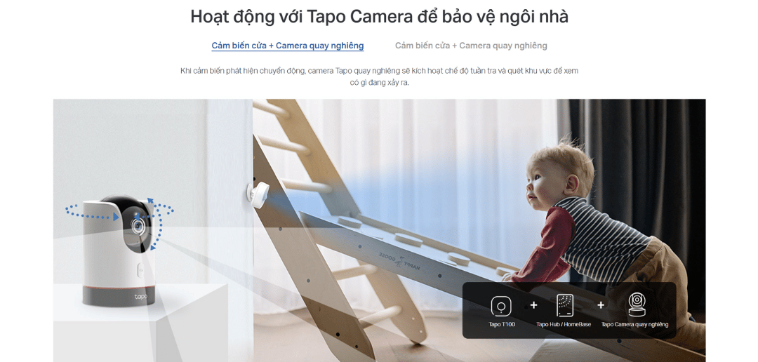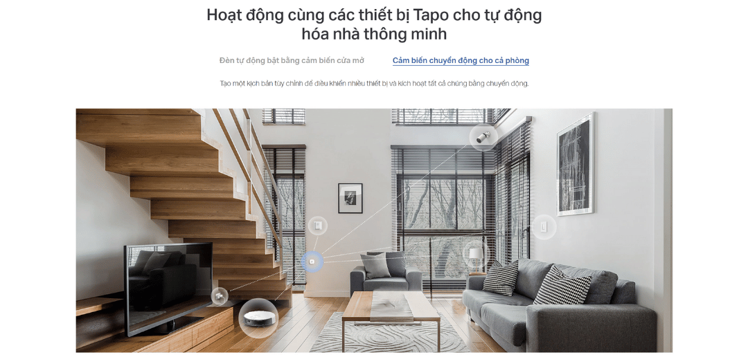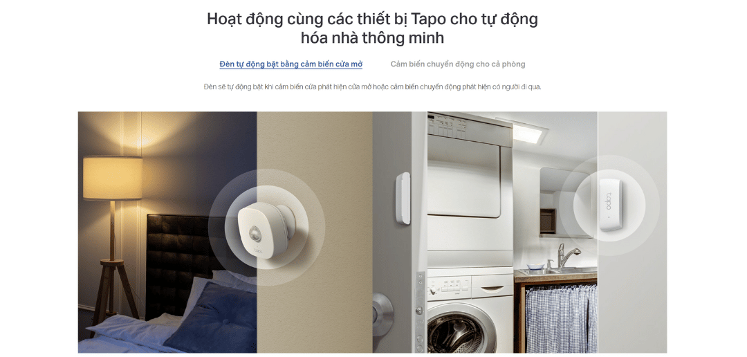 Kết nối cùng các thiết bị Tapo khác để tạo nên hệ sinh thái nhà thông minh – ví dụ: mở cửa là đèn bật, cảm biến chuyển động là camera bắt đầu quay...