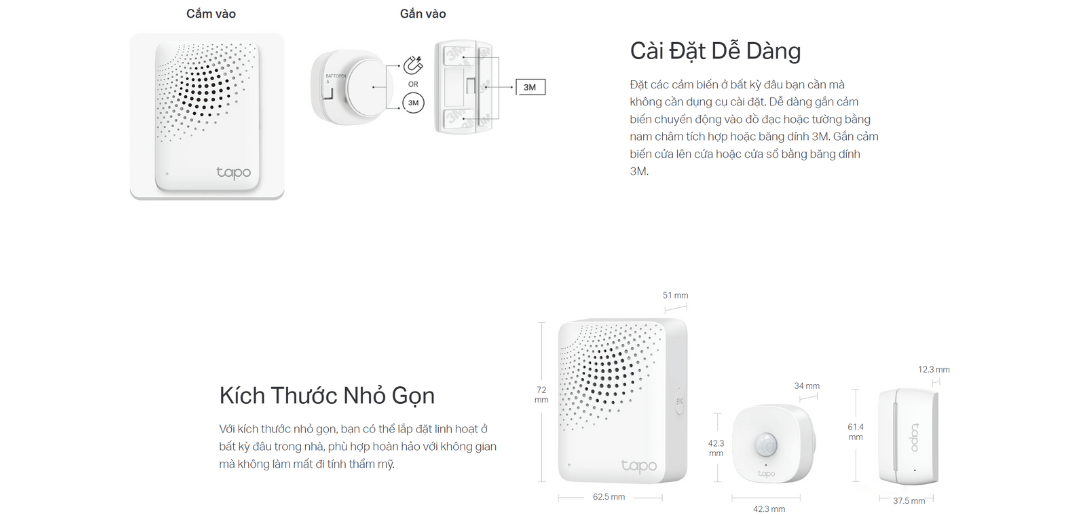 Gắn cảm biến ở bất kỳ đâu với thiết kế không dây, không cần khoan đục hay công cụ hỗ trợ.