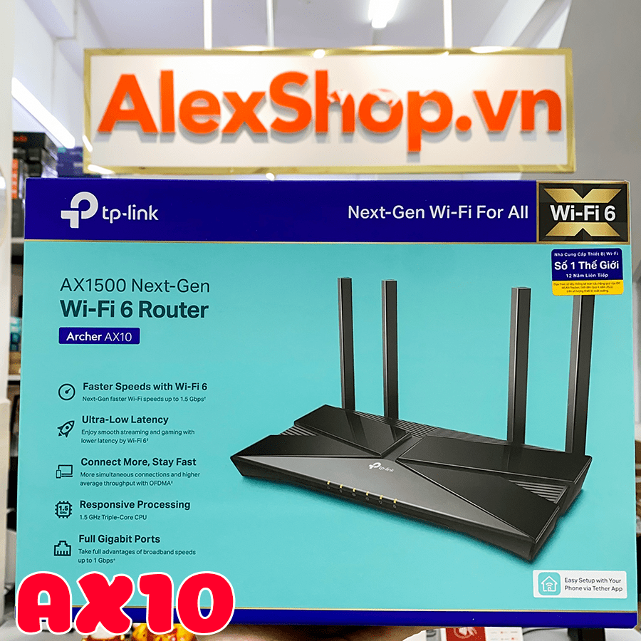 | Hộp | Router Wi-Fi Archer AX10 Bộ chuyển đổi nguồn Cáp Ethernet RJ45 Hướng dẫn cài đặt nhanh |