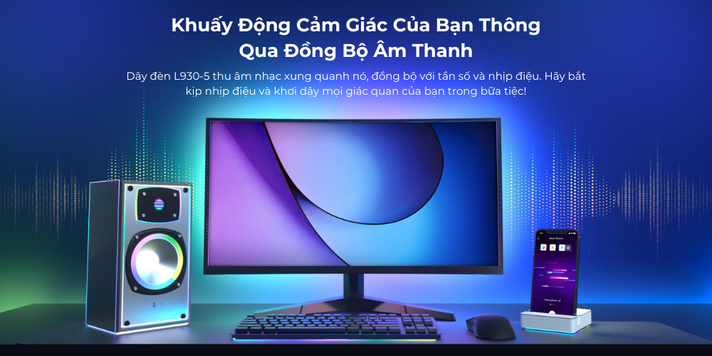 Đồng Bộ Âm Nhạc - tăng thêm cảm xúc bằng cách phát ra ánh sáng động , song song với nhịp điệu âm nhạc xung quanh.